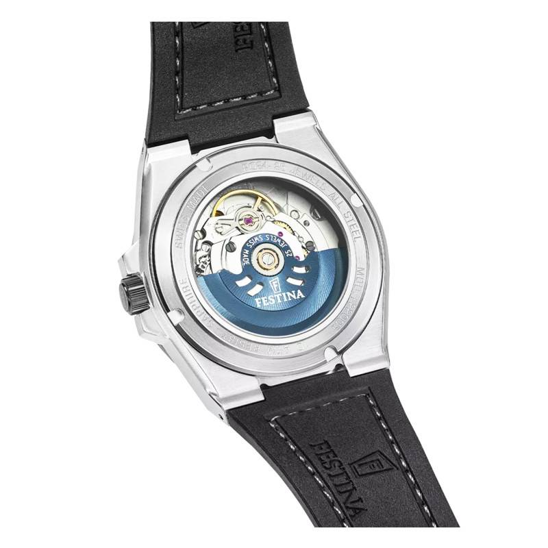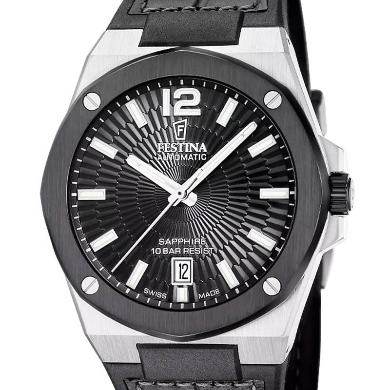 La montre Festina Swiss Made s'impose comme un modèle de choix pour tout amateur de belle horlogerie. Son boîtier rond en acier inoxydable 316L confère une robustesse à toute épreuve tout en maintenant une élégance certaine grâce à sa finition mate. Avec un diamètre de 42 mm et une épaisseur de 11,20 mm, cette montre offre des proportions équilibrées, idéales pour un port quotidien ou pour une occasion spéciale. Le fond transparent et vissé permet d'admirer le mécanisme à l'œuvre, un véritable plaisir pour les passionnés de montres mécaniques.