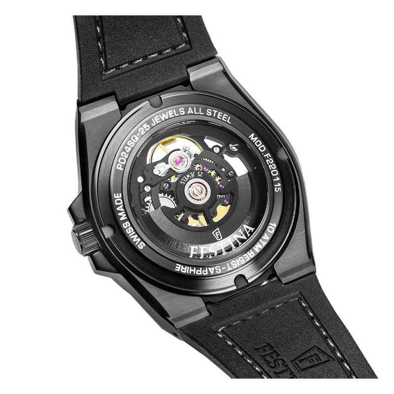 Au cœur de la Festina Swiss Made, on trouve un mouvement automatique suisse d'une précision impressionnante. Doté du calibre Soprod P024, ce mouvement symbolise le savoir-faire horloger suisse à son paroxysme. La complexité mécanique est magnifiquement mise en scène à travers le cadran squelette, qui laisse entrevoir la danse des composants en interaction harmonieuse.