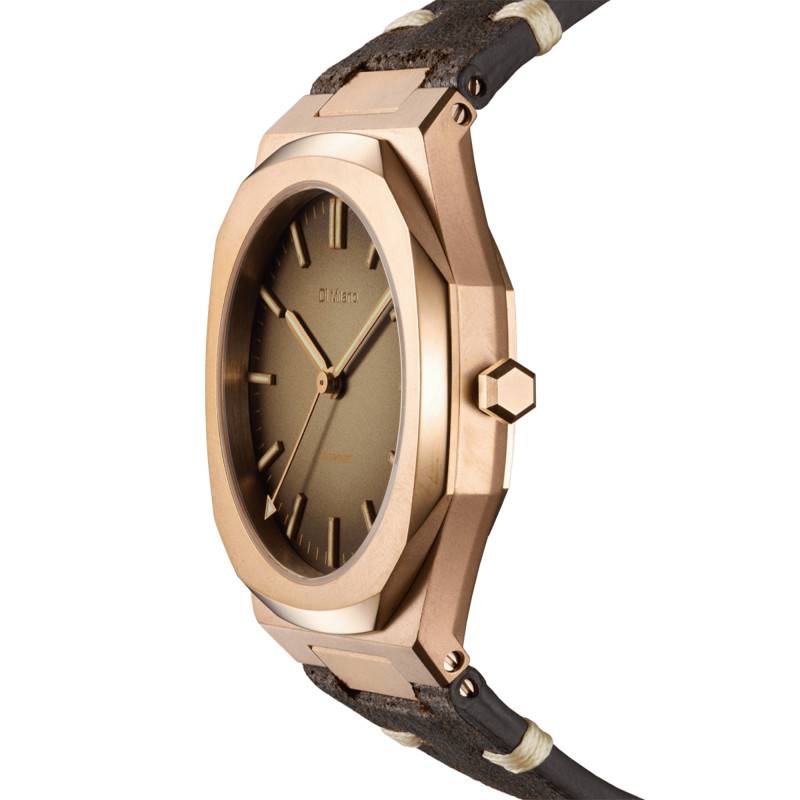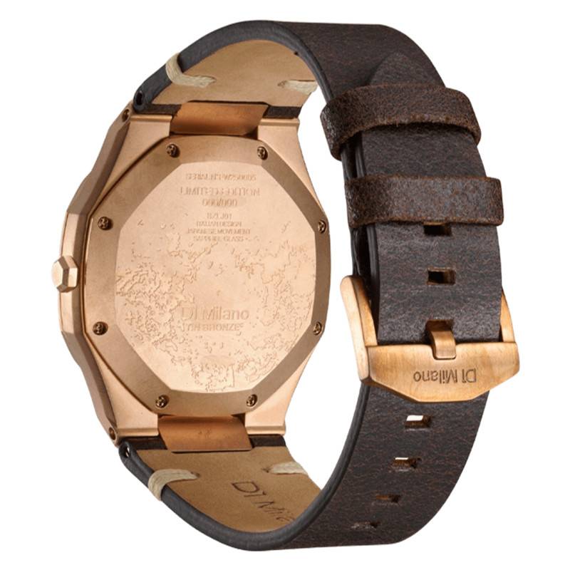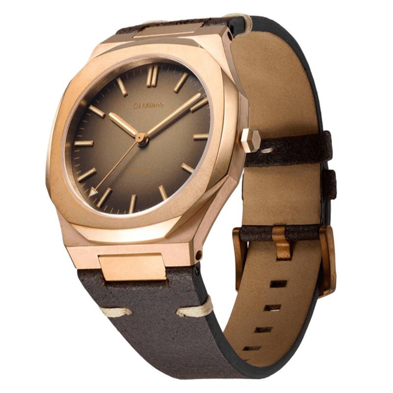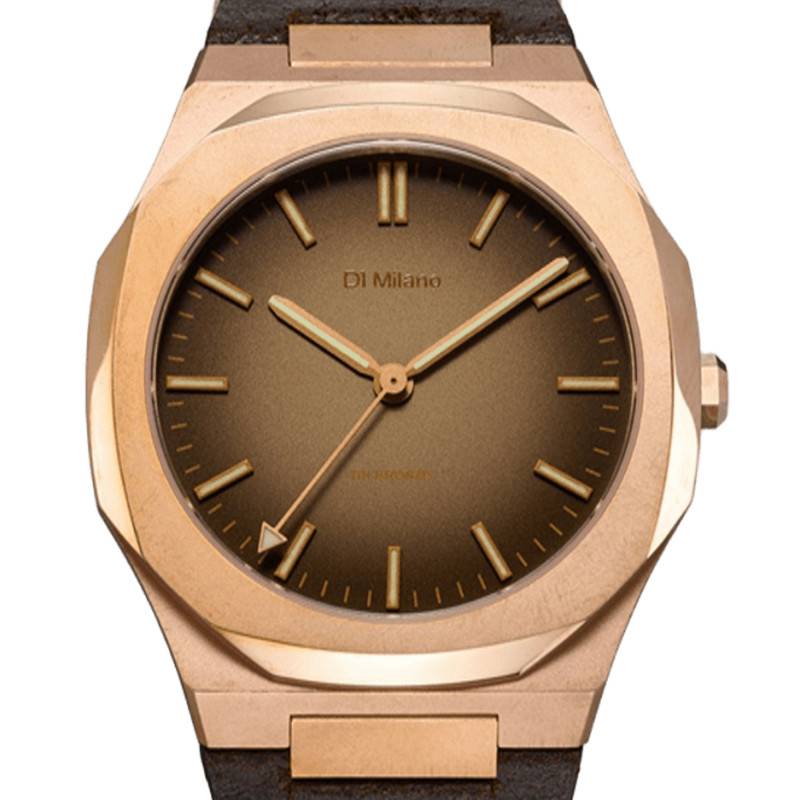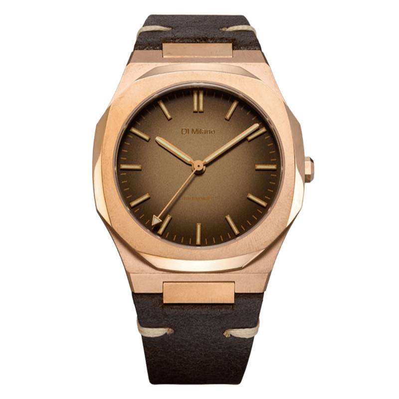 La montre D1 Milano Automatico Bronze est un précieux garde-temps qui mêle esthétique audacieuse et technologie de pointe. Avec son boîtier octogonal distinctif, cette montre capte immédiatement l'attention grâce à son allure élégante et moderne. Fabriqué en bronze, un métal noble reconnu pour sa robustesse et sa capacité à acquérir une patine unique avec le temps, ce boîtier est le choix parfait pour ceux qui recherchent à la fois la résilience et un style intemporel. La finition polie et satinée du boîtier ajoute une touche de sophistication et met en valeur le jeu de reflets subtils qui se déploient à chaque mouvement de poignet. Le boîtier mesure 40 mm de diamètre, une taille idéale pour offrir une présence affirmée au poignet sans être ostentatoire.