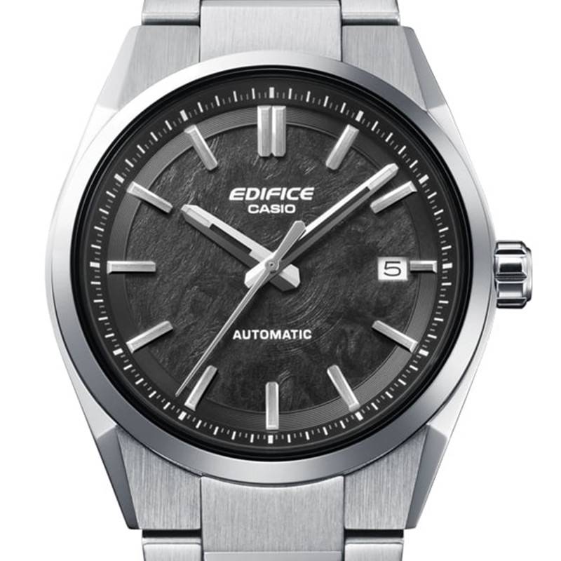 La montre Casio Edifice se distingue par son design intemporel et moderne qui répond à toutes les exigences de l'homme contemporain. Ce modèle se pare d'un boîtier rond en acier inoxydable de 38 mm de diamètre et 11,8 mm d'épaisseur, affichant une allure minimaliste et épurée. L'acier inoxydable, reconnu pour sa durabilité et sa résistance à la corrosion, confère à cette montre une qualité indiscutable, faisant d'elle un choix judicieux pour les amateurs de belles pièces horlogères. La finition brossée et satinée du boîtier accentue l'élégance du modèle tout en lui apportant une touche de sophistication particulière. Le fond de boîte transparent et vissé rehausse cet ensemble en permettant d'admirer le mouvement automatique à travers la surface en verre saphir, connu pour sa résistance aux rayures.