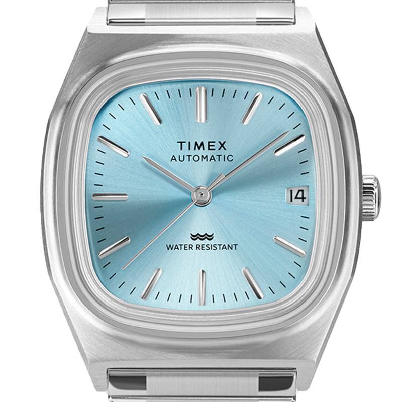 La montre automatique Timex® 1983 E Line, avec sa forme coussin, incarne un style à la fois vintage et moderne. Conçue pour les hommes, elle affiche un design robuste grâce à l'utilisation d'un acier inoxydable. Ce matériau confère à la montre non seulement une excellente durabilité mais aussi un style élégant. Le boîtier a une largeur de 34 mm et une épaisseur de 12,50 mm, ce qui en fait un accessoire à la fois discret et visible au poignet. La finition du boîtier est un mélange de superficies brossées et polies, ajoutant une touche subtile de sophistication.