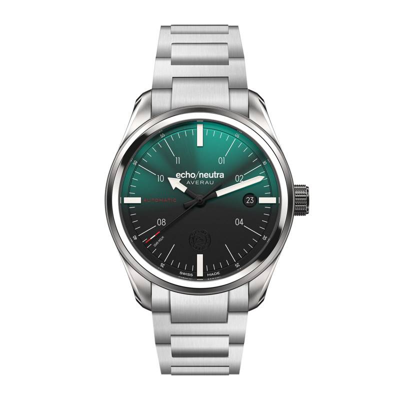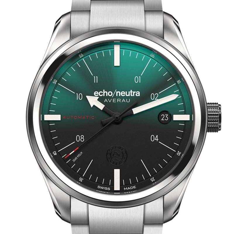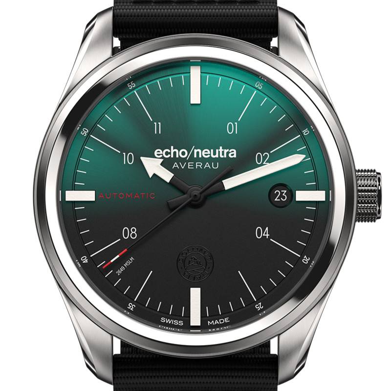 Conçue par Echo/Neutra, la montre Averau 39 3H incarne l'excellence suisse en matière d'horlogerie. Son boîtier rond de 39 mm de diamètre, fabriqué en acier inoxydable 316L, se distingue par sa robustesse et sa finition à la fois mate et brillante, offrant un aspect à la fois sportif et élégant. Le boîtier est également complété par une lunette en acier, renforçant son allure sophistiquée. Grâce à son épaisseur de 12,5 mm, la montre pèse avec élégance sur le poignet, marquant une présence subtile mais affirmée. La fabrication suisse garantit une précision et une qualité exceptionnelles, soutenues par une garantie internationale de deux ans.