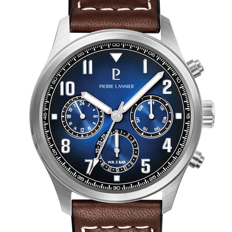 La montre de la marque Pierre Lannier illustre à la perfection l'équilibre entre fonctionnalité et esthétique. Ce garde-temps, fabriqué en France, séduit par son boîtier de forme ronde, réalisant un diamètre de 42,50 mm et une épaisseur discrète de 10,50 mm. Enveloppée dans un acier inoxydable de haute qualité, la montre révèle une finition mate, soigneusement satinée, qui accentue son allure contemporaine. Le poids total de 60,00 grammes offre une sensation agréable et rassurante au poignet, sans être invasif. Intégrant un verre Gorilla Glass, cette pièce conjugue la résilience et la clarté à travers son fond emboité garantissant une étanchéité jusqu'à 5 ATM, parfait pour résister aux éclaboussures ou à une immersion brève. Accueillant un bouton remontoir et deux boutons poussoirs pour une manipulation simplifiée des fonctions supplémentaires, cette montre allie performance et style dans chaque détail.
