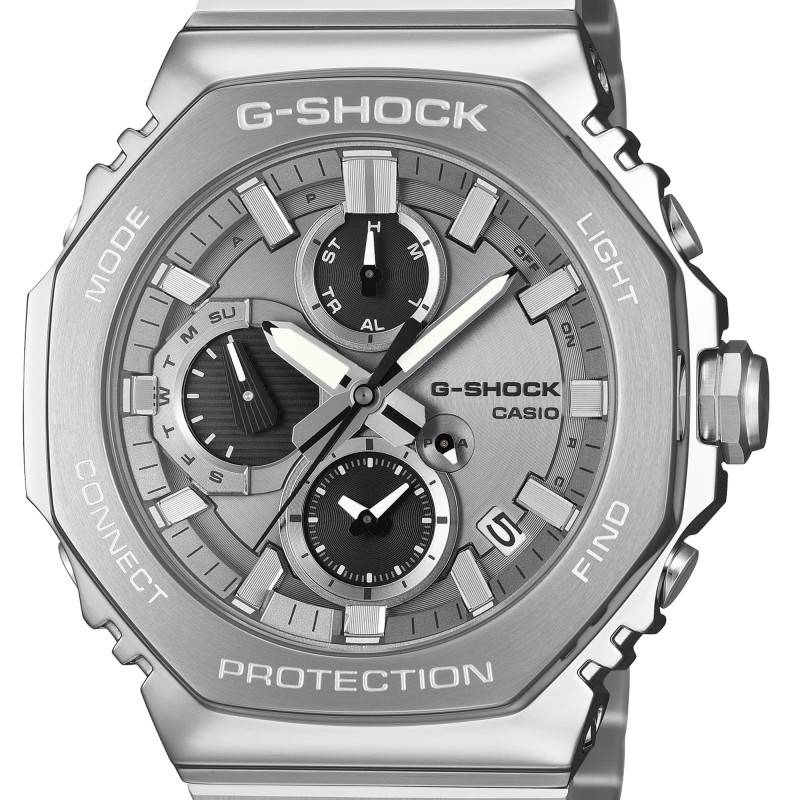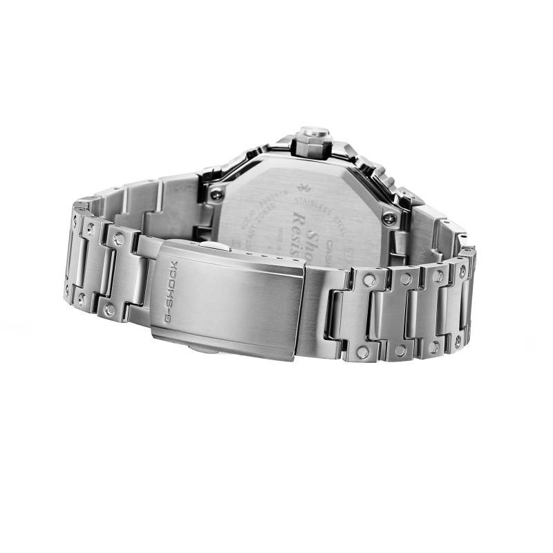 La montre Casio G-Shock B2100 Silver est un modèle conçu pour ceux qui recherchent la robustesse et l'élégance. Le boîtier est fabriqué en acier inoxydable, une matière reconnue pour sa résistance et sa durabilité. La forme octogonale du boîtier n'est pas seulement esthétique mais assure également une meilleure ergonomie au niveau du poignet. Avec ses dimensions de 51,30 mm de longueur, 46,40 mm de largeur et une épaisseur de 12,40 mm, elle offre une présence impressionnante et assure un confort optimal grâce à son poids de 171 grammes.
