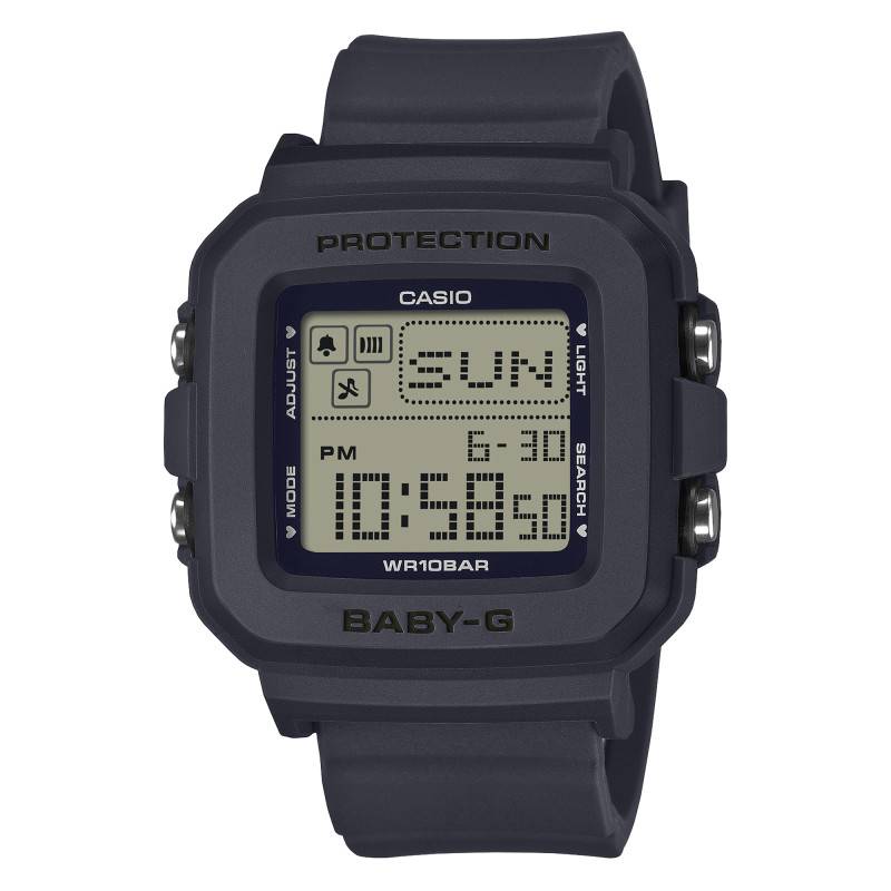 Le cadran LCD de cette montre Baby-G Plus se distingue par sa clarté et sa lisibilité optimisées grâce au numérique. En utilisant des chiffres arabes pour faciliter la lecture, il est complété par un éclairage LED Super Illuminator qui ravive l'affichage même dans les environnements les plus sombres. Un détail ludique vient agrémenter ce dispositif moderne : l'apparition d'un petit cœur sur l'écran lorsque le rétroéclairage est activé, ajoutant une touche charmante à son utilisation quotidienne. En mode heure, un simple appui sur le bouton de lumière déclenche une animation pixel art aléatoire, conférant une personnalité unique à votre montre.