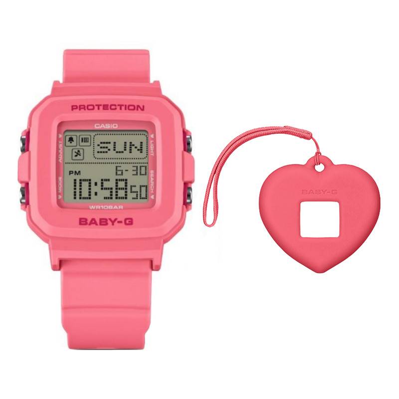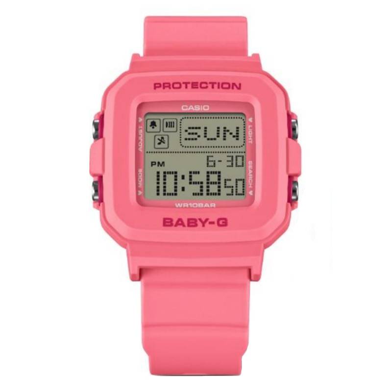 La montre Baby-G de Casio se présente comme une proposition audacieuse et intemporelle, spécialement conçue pour les femmes modernes appréciant le mélange de fonctionnalité et de style. Avec sa déclinaison en rose éclatant, ce garde-temps assure une présence remarquable au poignet tout en offrant des performances exceptionnelles. Le boîtier de forme coussin est élaboré dans une résine de haute qualité, garantissant légèreté et confort avec un poids de seulement 33 grammes. Ses dimensions généreuses, avec une longueur de 42,8 mm, un diamètre de 39 mm et une épaisseur de 14,7 mm, en font un choix idéal pour celles à la recherche d'une pièce à la fois chic et robuste. La montre est équipée d'un fond maintenu par des vis, assurant une solidité accrue, et protégée par un verre minéral réputé pour sa résistance aux éraflures.