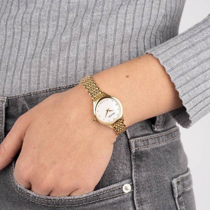 Ce garde-temps est équipé d'un bracelet en acier inoxydable avec un revêtement PVD jaune. Confortable et résistant, ce dernier est doté d'une finition polie qui apportera de l'éclat à vos tenues. Vous pourrez le garder sécurisé à votre poignet grâce à sa boucle déployante dorée.