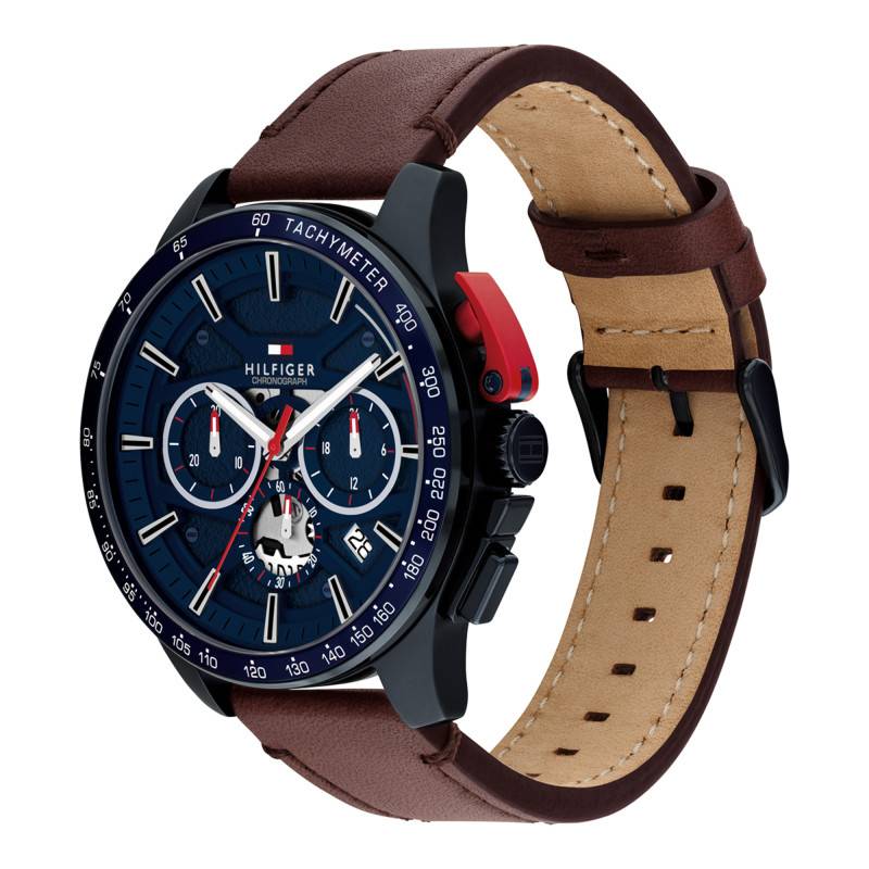 La montre Tommy Hilfiger que nous décrivons ici est un véritable exemple de style et de fonctionnalité. Fabriquée en acier inoxydable, sa construction robuste garantit une longévité exceptionnelle. Avec un diamètre de 44 mm, elle s'impose de manière fière et distincte sur le poignet, affirmant ainsi une présence forte propre aux garde-temps masculins. Son boîtier de forme ronde évoque une esthétique classique, tout en intégrant des éléments modernes qui séduiront les amateurs de montres contemporaines. L'association de couleurs avec le bleu du cadran et le noir du boîtier souligne un charme élégant et intemporel. La couronne et les deux boutons poussoirs ajoutent à l'esthétique générale tout en offrant des fonctionnalités pratiques pour le réglage et le chronométrage.