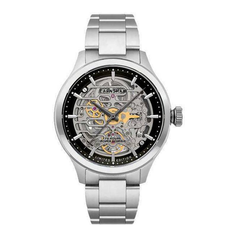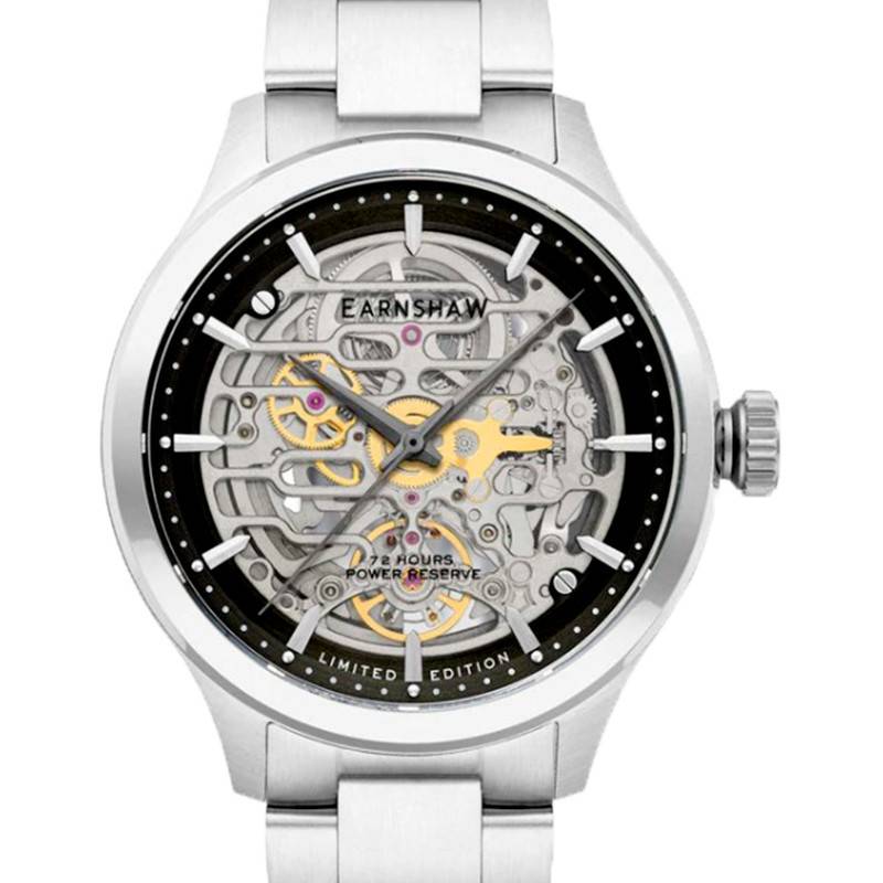 Son cadran se pare d'une finition squelette remarquable vous permettant de contempler le mécanisme en mouvement. En partie argenté, le mécanisme possède une touche de doré grâce à quelques pièces. En son centre, vous trouverez trois aiguilles dauphines en acier sublimé d'un PVD gris, donnant un aspect gris foncé qui vous indiqueront tout au long de la journée les heures, les minutes et les secondes. Le pourtour du cadran est de couleur noire et se compose d'un chemin de fer des minutes ainsi que d'index bâtons argentés. Enfin, sur le bas du cadran, est indiqué qu'il s'agit d'une édition limitée et la marque signe en dessous de l'index de midi.