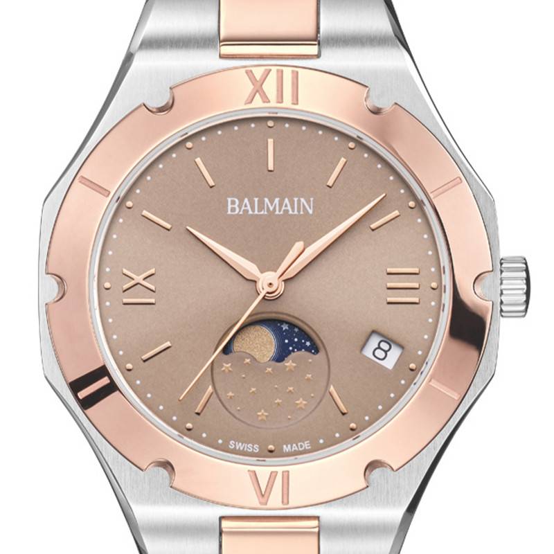 Balmain offre une montre d'une élégance sobre et parfaite pour les amateurs de haute horlogerie. La forme ronde est classique, intemporelle et convoquée par un boîtier si léger avec ses 110 grammes, ce qui en fait un accessoire délicat mais robuste. Fabriquée en acier inoxydable 316L, cette montre est conçue pour résister aux épreuves du temps tout en affichant un style sophistiqué. Les finitions, une délicate combinaison de brossé et de poli, lui confèrent un éclat inégalé, et le revêtement en PVD gris et rose ajoute une touche de distinction qui ne saura passer inaperçue. Le verre saphir couvre et protège avec robustesse le cadran, assurant une clarté qui résiste à l'épreuve des rayures. Avec un diamètre de 33 mm et une épaisseur de 8,15 mm, elle embrasse avec élégance et discrétion le poignet de celui qui la porte. L'étanchéité de 5 ATM garantit une bonne résistance à l'eau, faisant de ce garde-temps un compagnon fiable pour votre quotidien exigeant.