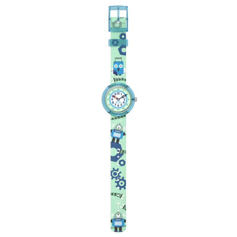 Le bracelet de la montre Beep Beep Beep ! est conçu en PET, un matériau réputé pour sa durabilité et son confort, idéal pour la vie active des enfants. Arborant des motifs de robots bleus et verts, ce bracelet ajoute une dimension ludique et imaginative à la montre, faisant de chaque moment une aventure. Le bracelet se ferme à l'aide d'une boucle ardillon, un choix pratique et sûr pour un usage quotidien.