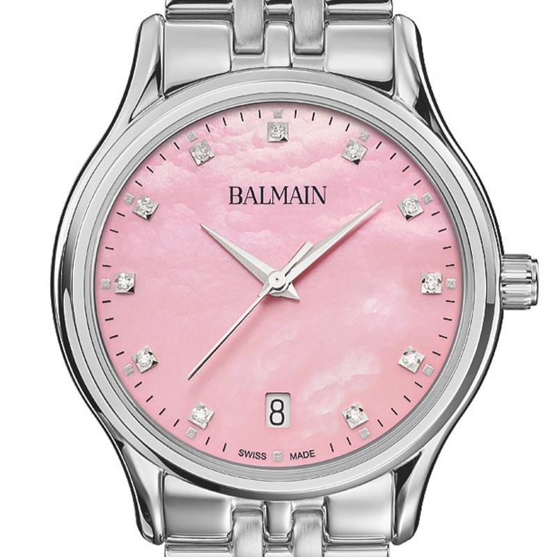 La montre Balmain Beleganza Lady M est un exemple parfait de l'élégance suisse, combinant un design raffiné et des matériaux de haute qualité. Le boîtier, d'un diamètre de 32 mm et d'une épaisseur de 6,27 mm, est façonné en acier inoxydable 316L, un matériau réputé pour sa robustesse et sa résistance à la corrosion. Cet acier présente une finition polie brillante qui accroche la lumière, soulignant les courbes gracieuses du boîtier rond. D'un poids de 77 grammes, cette montre est subtilement lourde, gage de qualité et de durabilité. La lunette, également en acier, offre un aspect harmonieux et continue le thème de la solidité matérielle.