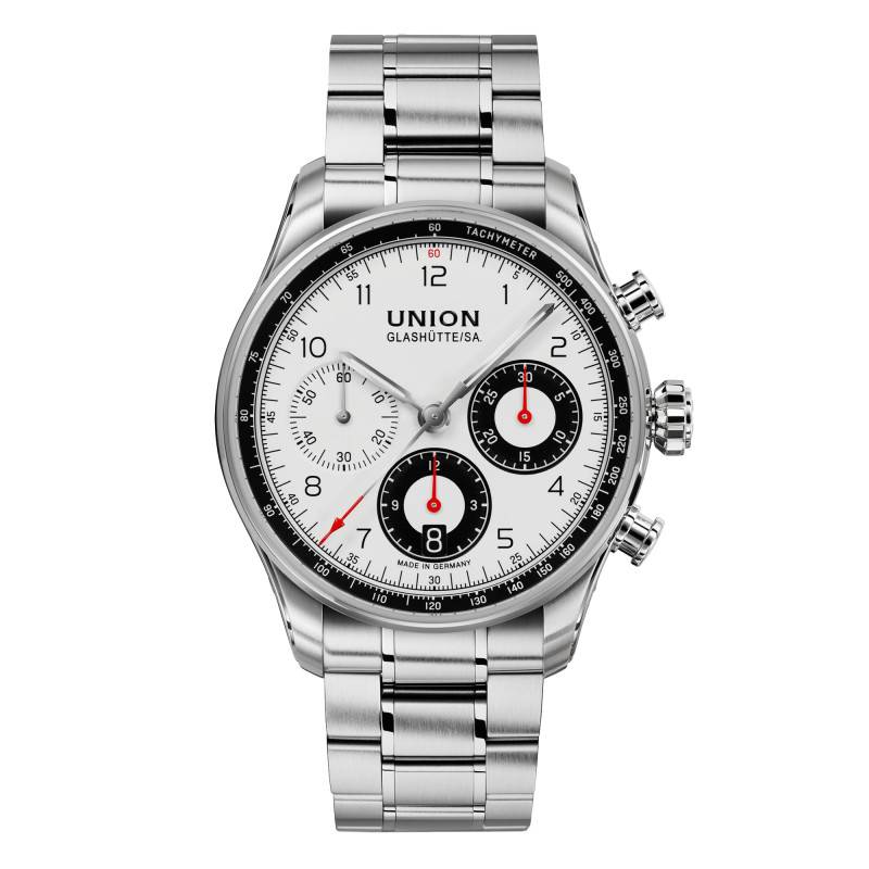 Au cœur de cette montre réside un mouvement automatique suisse UNG-27.S1, une véritable prouesse technologique de la maison Union Glashütte. Les mouvements automatiques sont reconnus pour leur précision et leur durabilité, et avec une fréquence d'oscillation de 25.200 A/h (3,5 Hz), ce modèle offre un affichage du temps parfaitement précis. Une réserve de marche de 60 heures garantit un fonctionnement ininterrompu pour ceux qui préfèrent ne pas porter leur montre quotidiennement. En ajoutant à cela une fonction chronographe détaillée, permettant des mesures de temps avec des compteurs distincts pour 12 heures, 30 minutes et 60 secondes, cette montre intègre des complications parfaitement adaptées à une vie moderne et active.