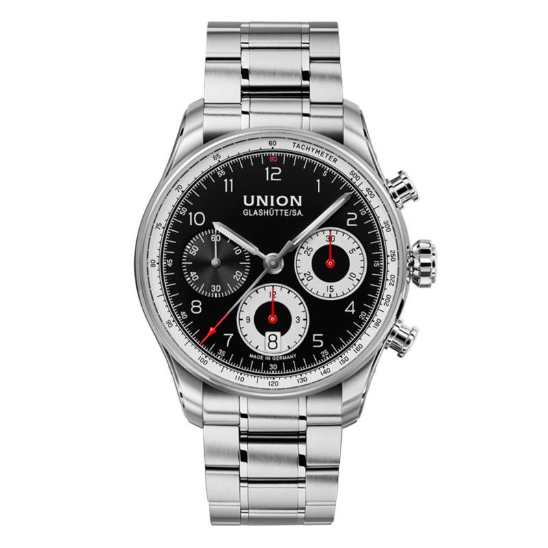 Le cœur de cette montre est son mouvement automatique suisse de marque Union Glashütte, calibre UNG-27.S1. Avec une réserve de marche impressionnante de 60 heures, ce garde-temps garantit une performance durable pour les amateurs d'horlogerie. Fonctionnant à une fréquence de 25,200 A/h (3,5 Hz), le mouvement est conçu pour offrir une précision remarquable. L'intégration des fonctions chronographes et l'affichage de la date démontrent une mécanique complexe soigneusement conçue pour assurer une fonctionnalité optimale et une facilité d'utilisation.