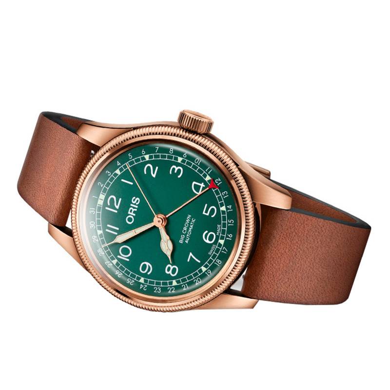 La maison horlogère Oris est réputée pour sa volonté quotidienne d'innover tout en voulant s'adapter à la tendance actuelle. C'est en offrant un design très recherché qu'elle atteint son objectif principal. En effet, c'est à l'occasion du 80e anniversaire de la montre Big Crown que la marque va proposer une édition spéciale en bronze avec un cadran vert. Ce garde-temps est de base destiné aux pilotes mais sait convenir à tous les styles. Elle se distingue par une couronne surdimensionnée et avec la fonction Pointer Calendar. Ce modèle représente un grand symbole de la marque et sa véritable authenticité. Il est important de préciser que sans ce modèle, Oris ne serait pas leader dans les montres mécaniques Swiss Made. Avec son boîtier en bronze de 40 mm de diamètre, la Big Crown Pointer Date 80th réussit à souligner sa finesse ainsi que son raffinement. Oris choisit d'associer à ce dernier un verre saphir, il est fabriqué à partir d'oxyde d'aluminium cristallisé à hautes températures. Cette transformation fait alors de lui une matière particulièrement résistante et extrêmement dure. Il va alors réussir à lutter contre les chocs et éraflures. Cette montre est aussi dotée d'une couronne surdimensionnée. De base, elle était destinée aux aviateurs pour qu'ils puissent l'ajuster correctement, même avec leurs gants. La marque est connue pour ne rien laisser au hasard. En effet, en ce qui concerne la technicité de la montre, vous pourrez vous servir facilement de la couronne-remontoir qui se trouve à 3h. Elle vous aidera à régler votre garde-temps.