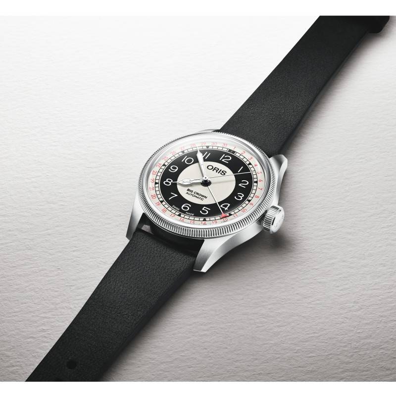 La Oris Big Crown Pointer Date Bullseye est une montre qui reflète l'excellence suisse en matière d'horlogerie. Conçue avec un boîtier rond en acier inoxydable, sa finition polie et brillante lui confère un look à la fois classique et moderne. Ses dimensions équilibrées, avec un diamètre de 38mm, garantissent une élégance confortable pour toute circonstance. Le verre saphir bombé, élément souvent réservé aux pièces haut de gamme, protège le cadran tout en offrant une excellente résistance aux rayures. De plus, son traitement antireflets assure une lecture aisée quelles que soient les conditions de lumière. Le fond de la boîte est transparent et vissé, permettant d'admirer le mécanisme interne tout en renforçant l'étanchéité jusqu'à 5 ATM.