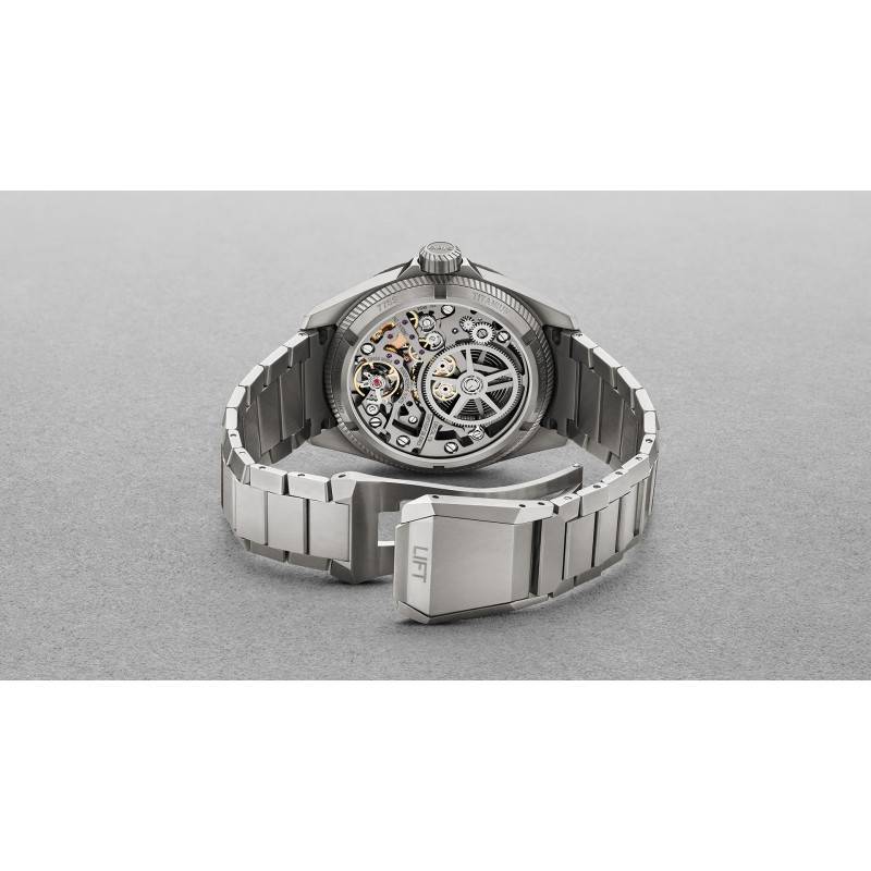 Cette élégante montre disposera d'un bracelet de couleur grise. Conçu avec la même matière titane que le boîtier, le bracelet multimaillon apportera toute l'harmonie nécessaire pour un tel bijou. Sa finition brossée donnera elle tout le charme à la montre. Pour refermer ce bracelet à votre poignet masculin, une boucle déployante simple sera spécialement mise en place. Enfin, l'entre-corne de ce dernier va mesurer 22 millimètres et tiendra ainsi facilement au poignet.