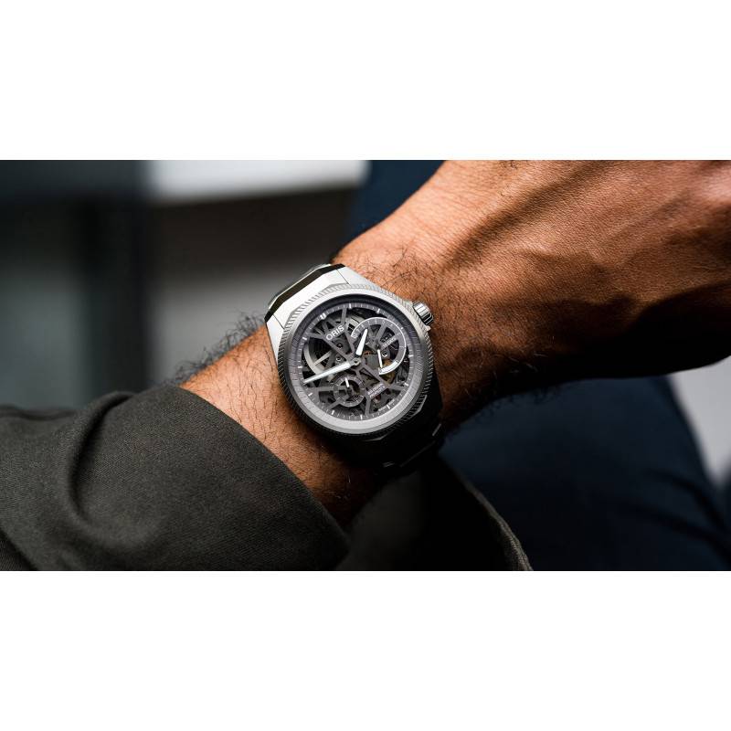 La maison horlogère suisse Oris vous fait découvrir un magnifique garde-temps prestigieux au style épuré et soigné. A votre poignet d'homme il apportera toute l'élégance et le raffinement que vous désirez avoir dans votre quotidien luxueux. De plus avec sa simplicité il vous accompagnera également lors d'occasions spéciales avec tous types tenues sur vous. Cette montre qui suit la philosophie d'Oris arbore un boîtier de 44 millimètres en titane de couleur grise en restant donc avec des dimensions classiques pour un modèle masculin. Logée à trois heures, une couronne vissée de sécurité en titane trouvera place. Cette dernière permettra de faire vos réglages d'heures dans votre quotidien ainsi qu'effectuer le remontage manuel. Une lunette très mince verra par ailleurs le jour et offrira avec la couronne un look dynamique à cette montre. De plus, un verre saphir bombé avec un traitement antireflet sur les deux côtés surplombera la montre et la protégera ainsi de toutes les imperfections. En outre, un fond de boîtier vissé en titane avec un verre transparent complétera ce bijou, ainsi pourrez découvrir le mécanisme sur le verso. Cela donnera à la montre une étanchéité de 10 ATM et donc d'être une montre de sport moderne.