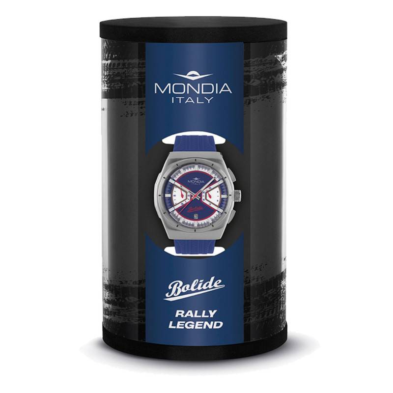Les montres de Mondia sont connues pour leur style unique et rétro. Fondée en 1935, cette marque marie le design italien au savoir-faire suisse pour créer de magnifiques montres en utilisant des matériaux de qualité. Ses modèles sophistiqués mettront en valeur votre poignet. La marque propose aux hommes sportifs passionnés de courses automobile cette montre Bolide Rally Legend MI-819-SS-BLWT-CG. Celle-ci dispose d'un boîtier octogonal en acier inoxydable de 42 mm de diamètre et 11 mm d'épaisseur, des dimensions idéales pour un grand confort. Son cadran est surplombé par un verre minéral et la couronne crantée placée à 3 heures est accompagnée de deux boutons-poussoirs pour actionner les aiguilles, le guichet et le chronographe. Pour finir, cette superbe montre dispose d'un fond de boîte qui lui assure une étanchéité de 5 ATM.