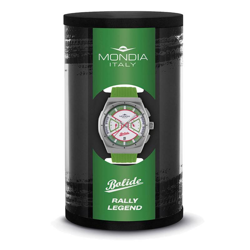 C'est en 1935 que Paul Vermot, technicien de renom, a donné naissance à la marque horlogère Mondia. Réputée pour l'élégance et la précision de ses modèles, cette maison propose des montres exquises dotées d'un design unique et intemporel. La qualité des matières utilisées pour leur conception fait d'elles des modèles durables qui vous accompagneront dans toutes vos aventures. C'est le cas de cette montre Bolide Rally Legend MI-819-SS-GRWT-CG au design vintage et moderne. Elle est munie d'un boîtier octogonal de teinte grise fait en acier inoxydable brossé, une matière de qualité qui vous assure une longue utilisation. Il a un diamètre de 42 mm et une épaisseur de 11 mm, parfait pour les poignets masculins. Il est surplombé d'un verre minéral qui recouvre le cadran tandis que sur son côté droit, est placé une couronne crantée avec deux boutons poussoirs, servant au réglage des multiples fonctions du garde-temps. Le fond de boîte de celui-ci lui assure une étanchéité de 5 ATM.