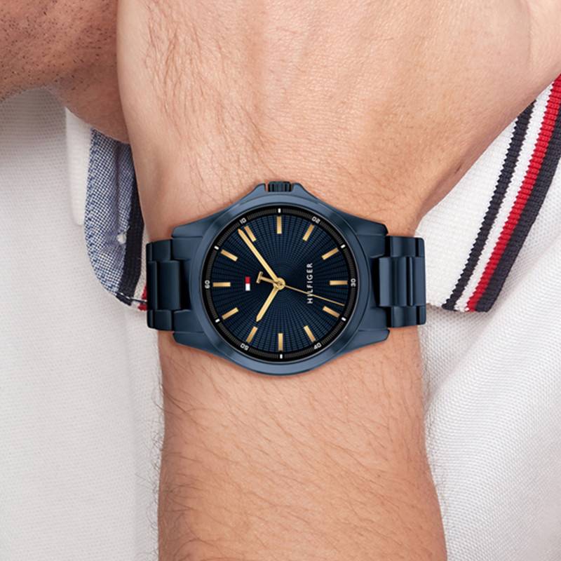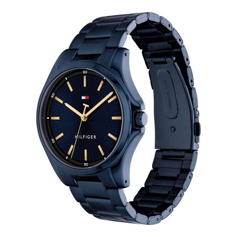 La montre Bruce de Tommy Hilfiger est une merveille de simplicité et de sophistication, conçue pour l'homme moderne qui apprécie autant la fonctionnalité que l'esthétique. Cette pièce remarquable se présente dans un boîtier rond en acier inoxydable, doté d'une finition mate qui lui confère une allure subtilement élégante. Le diamètre de 42 mm est idéal pour offrir une présence affirmée sans être excessif, tandis que l'épaisseur de 10 mm assure une élégance discrète sous la manche d'une chemise. Avec un poids de 127 g, cette montre offre un équilibre parfait entre solidité et confort. La lunette, également en acier, est harmonisée avec le reste de la montre, complétant un ensemble où chaque détail est pensé avec soin. Le verre minéral plat assure une bonne protection contre les rayures du quotidien tout en maintenant un aspect classique et pur.