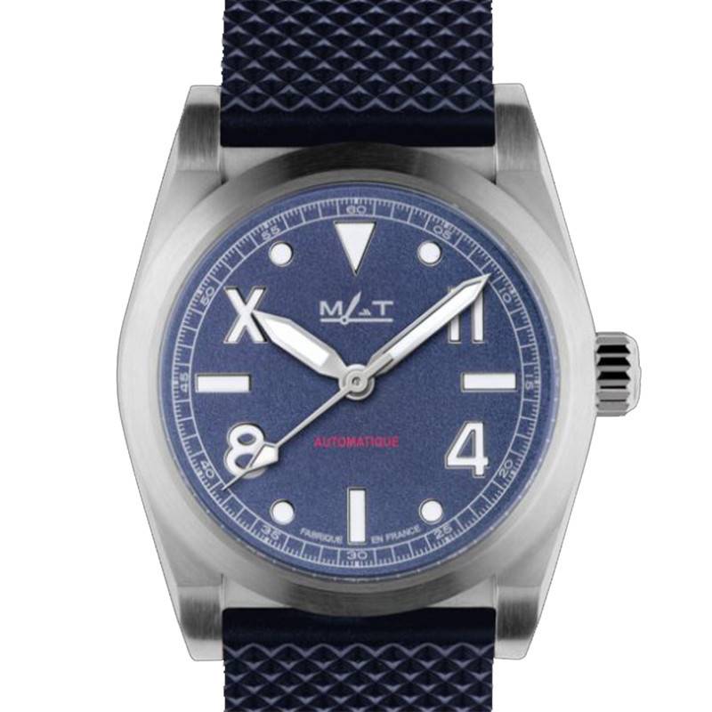 La marque française Matwatches s'illustre dans l'art des modèles à destination des militaires comme des hommes passionnés d'horlogerie. Toujours à la recherche de design novateurs et de robustesse à toute épreuve, elle vous dévoile ici un modèle issu de sa collection California. La AG7 GM A7 vous accompagnera partout grâce à son look chic et casual. Elle se dote d'un boîtier en acier inoxydable d'un diamètre de 39mm pour une épaisseur de 11.5mm. Un verre saphir bombé inrayable viendra protéger le cadran des éventuels chocs et autres malencontreuses rayures. A trois heures viendra prendre place la couronne crantée qui vous permettra de régler facilement les différentes aiguilles. Enfin, son fond de boîte vissé vous garantira une étanchéité de 10 atmosphères.