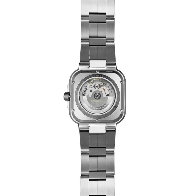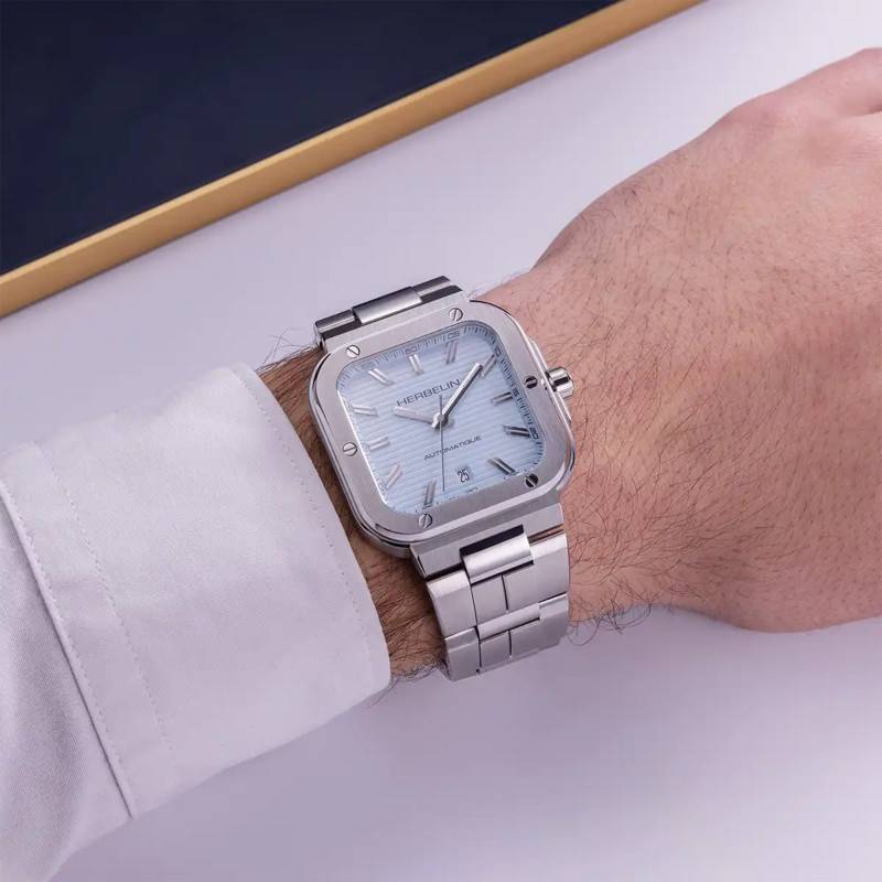 Herbelin est une marque horlogère forte d'un savoir-faire incomparable. Elle fabrique des modèles arborant splendeur et technicité dans le but de vous accorder un style moderne avec précision. Dans ses ateliers où fusionnent l'authenticité et l'audace, elle élabore des garde-temps élégants et équipés qui sauront vous accompagner en toute occasion. Elle vous invite à découvrir la montre Cap Camarat Square Automatic 1646B25 qui ornera les poignets des hommes avec prestance. De ton argenté, elle se pare d'un joli boîtier brossé et poli réalisé en acier inoxydable 316L qui vous accordera une forte solidité et une allure captivante. Celui-ci dévoile une forme carrée arrondie sur les bords et affiche 39 mm de longueur et de largeur pour une épaisseur de 10,35 mm. Il est muni d'une lunette ornée de 6 vis apparentes lui apportant une touche raffinée. De plus, il est pourvu d'une couronne grise à l'aspect cranté qui vous accordera une prise en main aisée. Vous noterez que celle-ci est protégée et permet la manipulation des éléments du cadran qui sont protégés par le résistant verre saphir qui les surmonte. Enfin, cette montre est munie d'un fond de boîte transparent laissant une vue sur les rouages de son mouvement et qui lui assure une étanchéité de 10 ATM.