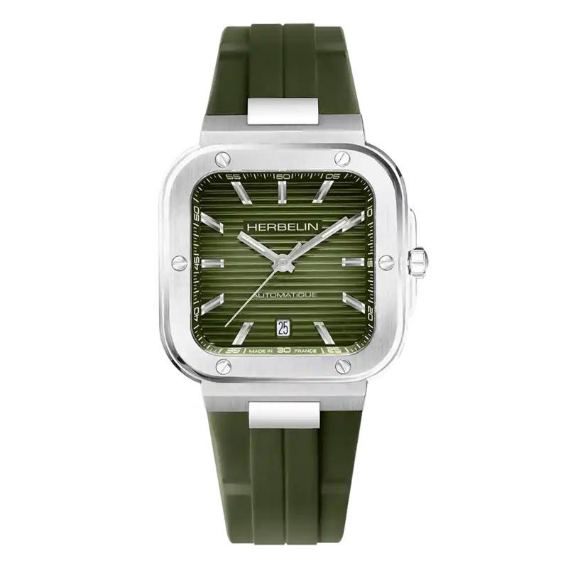 La montre Cap Camarat Square Automatique Kaki de la prestigieuse marque Herbelin est un parfait exemple de l'excellence horlogère française. Conçue avec une attention minutieuse aux détails, cette montre arbore un boîtier carré qui évoque une esthétique à la fois moderne et intemporelle. Fabriqué en acier inoxydable 316L, le boîtier est incroyablement robuste et résistant, offrant une protection optimale contre les impacts et les rayures. Le choix du verre saphir plat renforce cette durabilité tout en offrant une clarté exceptionnelle. Le style global de ce garde-temps se marie habilement à des éléments mats et brossés, créant un équilibre visuel entre élégance et fonctionnalité. Avec une taille de 39 mm x 39 mm et un poids bien réparti de 113 g, elle s'ajuste confortablement au poignet, symbolisant une véritable prouesse d'ingénierie dans l'art de l'horlogerie. Enfin, le fond de boîte transparent maintenu par des vis offre au propriétaire la chance d'admirer le magnifique mouvement en action, soulignant à merveille la sophistication mécanique propre à toute montre exceptionnelle.