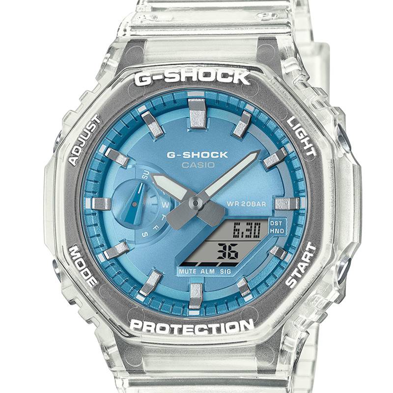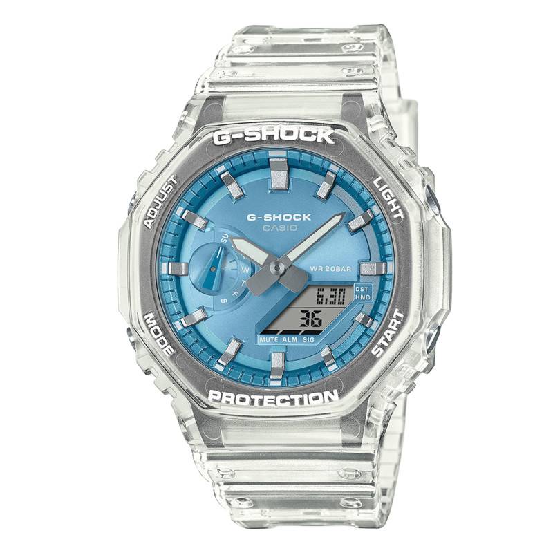 Le cadran de cette montre, à la finition particulièrement soleillée, capte la lumière d'une manière spectaculaire, révélant un éclat bleu profond qui attire tous les regards. Ce choix esthétique, allié à la dimension fonctionnelle, donne accès à un ensemble d'informations essentielles d'un simple coup d'œil. Grâce à sa combinaison d'affichage analogique et numérique, la montre permet de lire l'heure de manière précise en s'appuyant sur des aiguilles luminescentes qui garantissent une visibilité impeccable, même dans des conditions de faible éclairage. Les index, bien marqués sur le cadran, facilitent quant à eux la lecture rapide de l'heure. La présence d'un chemin de fer des minutes ajoute une touche de sophistication tout en offrant une praticité indispensable pour chronométrer avec exactitude. Grâce à l'intégration d'une LED, l'éclairage est intelligent, permettant une lisibilité sans faille, peu importe le contexte. Le cadran abrite également un compteur qui fournit des informations sur le jour tout en ajoutant à l'aspect multifonctionnel de la montre. Le nom de la marque Casio G-Shock s'inscrit élégamment sur la partie supérieure, assurant la reconnaissance et valorisant l'appartenance à cette gamme emblématique. Cet ensemble harmonieux de fonctionnalités et de finitions rend le cadran aussi plaisant à contempler qu'efficace à utiliser.