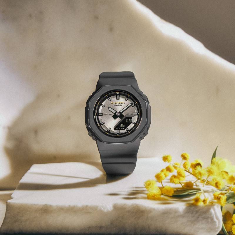 La montre Casio G-Shock est l'incarnation parfaite de la robustesse et de la performance. De plus, cette montre est une édition spéciale créée pour commémorer la Journée Internationale des Droits des Femmes le 8 mars prochain. Son boîtier octogonal en résine noire, fabriqué au Japon, combine subtilement un design moderne et une construction durable. Avec un diamètre de 40,50 mm et une épaisseur de 11,30 mm, ce modèle offre un équilibre parfait entre style et confort. Le poids total de 37 g rend cette montre extrêmement agréable à porter au quotidien, n'occasionnant aucune gêne sur votre poignet. Sa finition mate, à la fois brossée et satinée, ajoute une touche de sophistication à l'ensemble, la démarquant ainsi comme un accessoire à la fois fonctionnel et esthétiquement plaisant. La montre est également dotée d'un fond de boîtier maintenu par des vis, garantissant ainsi une solidité structurelle inégalée.