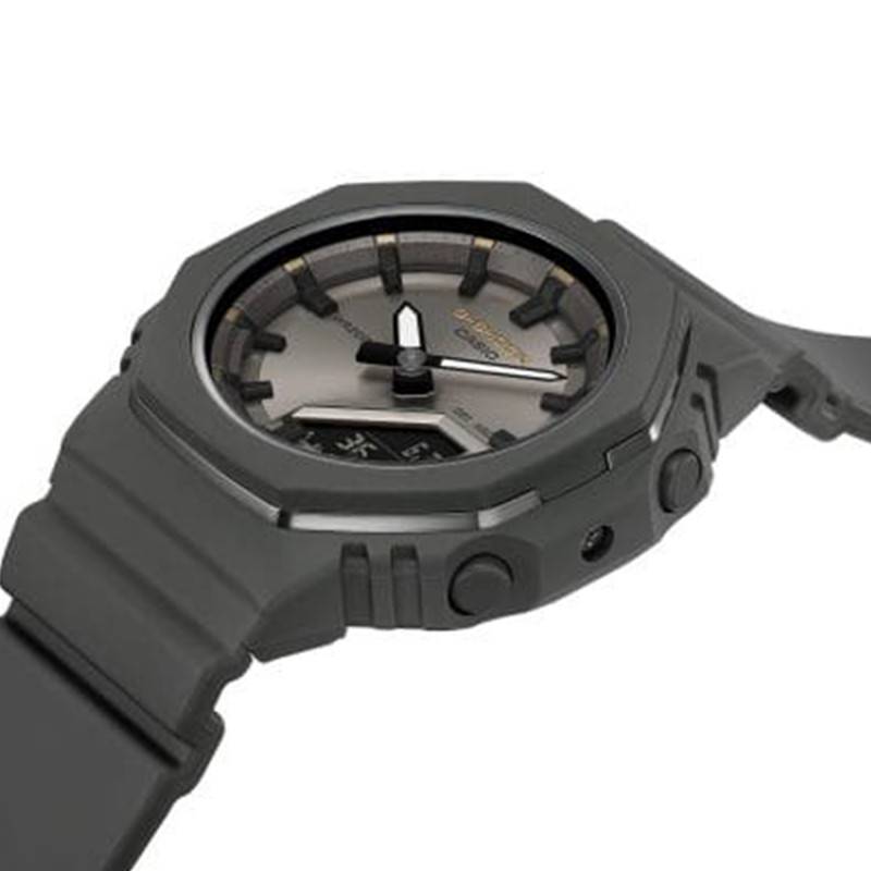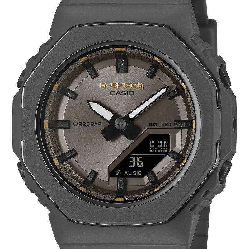 Le cadran de cette montre Casio G-Shock présente une allure résolument contemporaine, grâce à la finition mate qui lui confère une élégance discrète. Équipé d'aiguilles et d'index luminescents, le cadran assure une lecture de l'heure facile, même dans des conditions de faible luminosité. Le mélange astucieux de l'affichage analogique et numérique offre une flexibilité remarquable, tandis que les informations supplémentaires sur le temps sont clairement présentées grâce à l'écran LCD intégré. Non seulement le cadran affiche les heures, les minutes et les secondes, mais il inclut aussi un calendrier complet avec l'indication du jour, de la date et du mois. Le chemin de fer des minutes assure une lisibilité parfaite, facilitant ainsi l'utilisation quotidienne. Le verre minéral protège ce cadran, offrant une protection efficace contre les égratignures, ce qui est indispensable pour une montre conçue pour les aventuriers urbains et les passionnés d'activités de plein air.