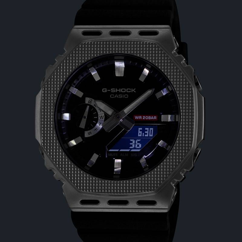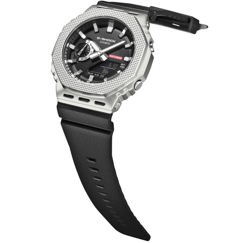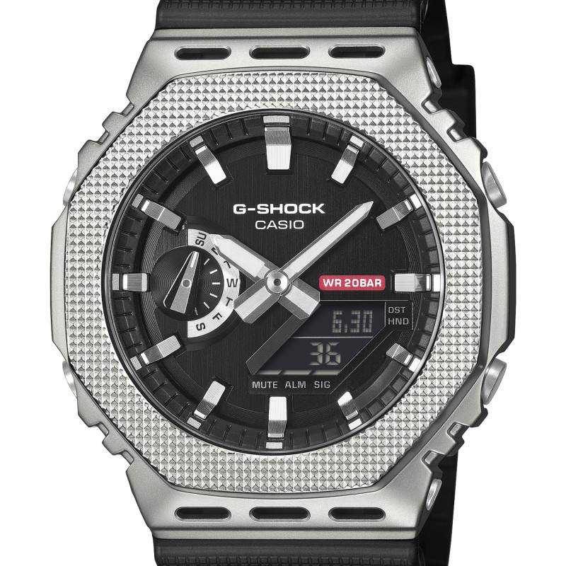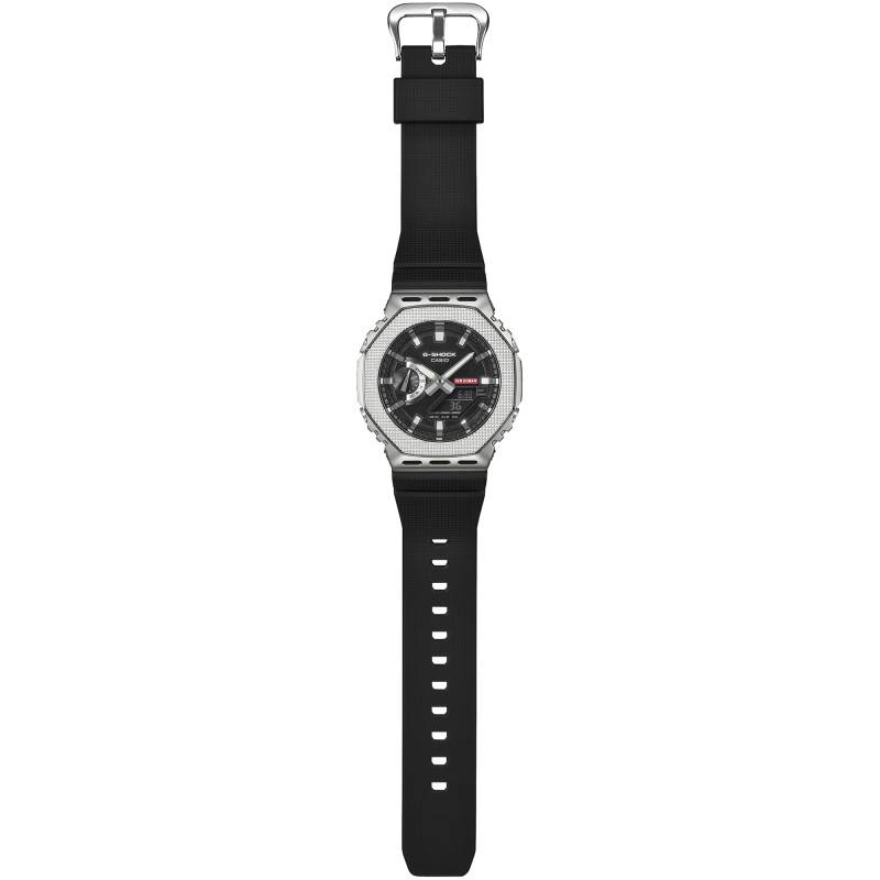 La montre Casio G-Shock se distingue par son design octogonal unique, alliant un boîtier robuste en acier inoxydable et en résine renforcée de fibre de verre. Son diamètre imposant de 44 mm et sa longueur de 49,30 mm assurent une présence remarquée au poignet, tandis que son épaisseur de 11,80 mm conserve une légèreté avec un poids de 71 g. Le fond de boîte, sécurisé par des vis, garantit une protection supplémentaire contre les éléments extérieurs, rendant ce modèle parfait pour une utilisation rigoureuse et aventureuse.
