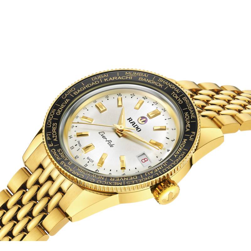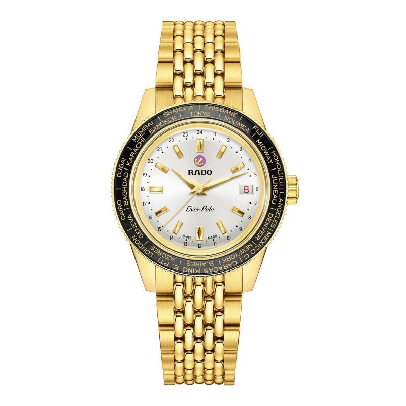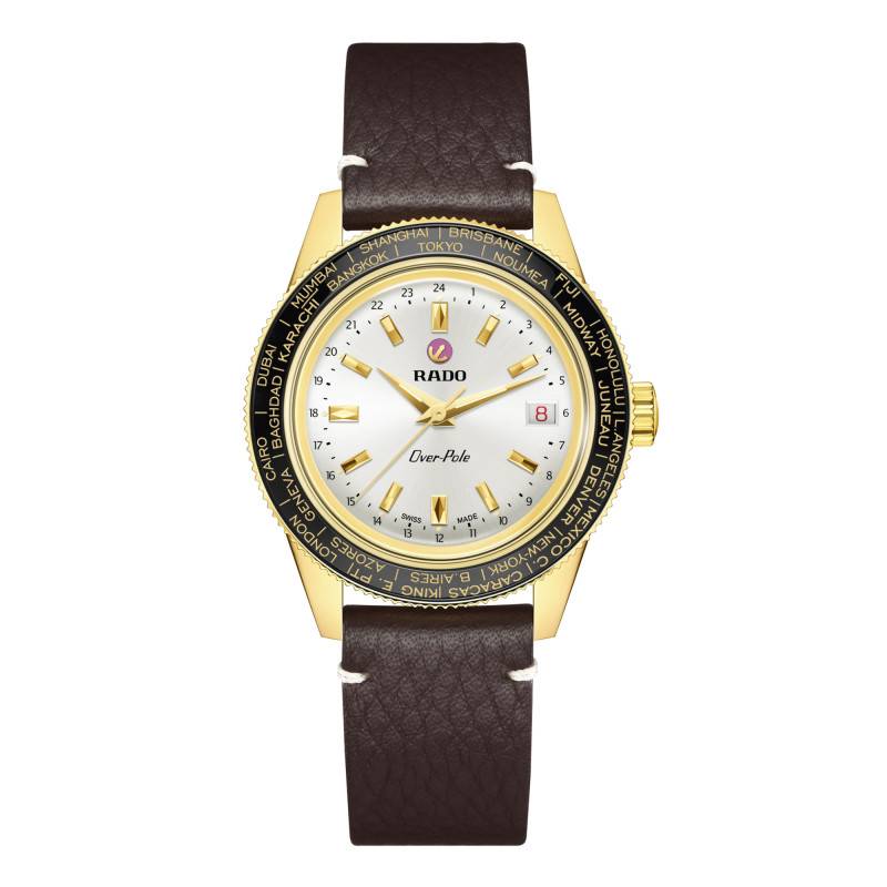 La Rado Captain Cook Over-Pole Limited Edition est une sublime montre conçue pour l'homme moderne, mariant avec élégance la tradition horlogère suisse et le design contemporain. Le boîtier est ingénieusement fabriqué en acier inoxydable avec une finition PVD jaune, lui conférant une allure précieuse qui capte la lumière avec une intensité éclatante. D'un diamètre raffiné de 39 mm, sa silhouette ronde classique rappelle les modèles légendaires de la maison Rado. Non seulement esthétiquement séduisante, cette montre est également robuste, grâce à son fond de boîtier vissé qui assure une étanchéité jusqu'à 10 ATM. Le fond de boîte transparent permet d'admirer le mouvement en fonctionnement, une véritable ode à l'artisanat horloger qui séduira les connaisseurs. Le verre saphir bombé, traité antireflet, protège le cadran tout en offrant une visibilité optimale des détails et de la finition vieillie du cadran. Le statut de cet ouvrage horloger comme édition limitée à 1962 exemplaires ajoute non seulement à sa rareté mais également à son attrait durable auprès des collectionneurs avertis.