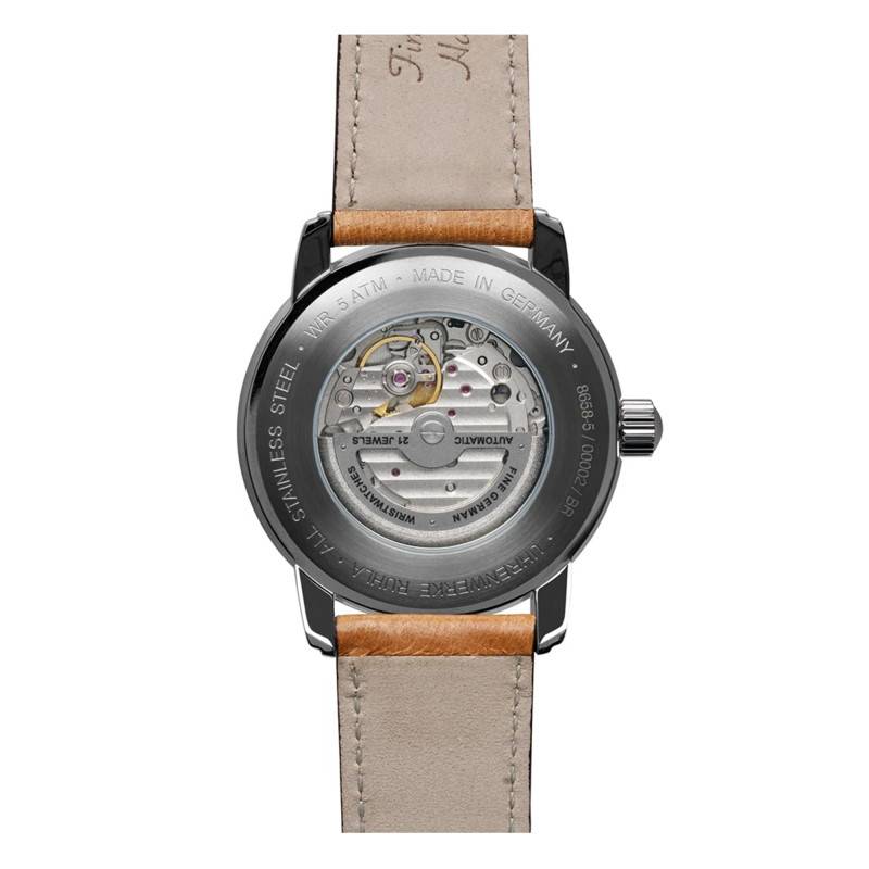 Animée par un mécanisme automatique, la montre abrite un mouvement japonais Miyota 82S7, symbole de précision et de fiabilité. Le mouvement automatique se recharge naturellement au contact de votre poignet, ce qui vous libère de la contrainte du remontage manuel. Ce calibre renferme une réserve de marche de 40 heures, permettant à votre montre de continuer à fonctionner même lorsque posée durant un weekend. Il oscille à une fréquence de 21,600 A/h (3 Hz), garantissant une précision continue. L'intégration de ce calibre japonais témoigne de l'engagement de Zeppelin pour une horlogerie de pointe, associant la précision suisse à l'innovation japonaise, ce qui se traduit par un garde-temps à la fois fiable et performant.