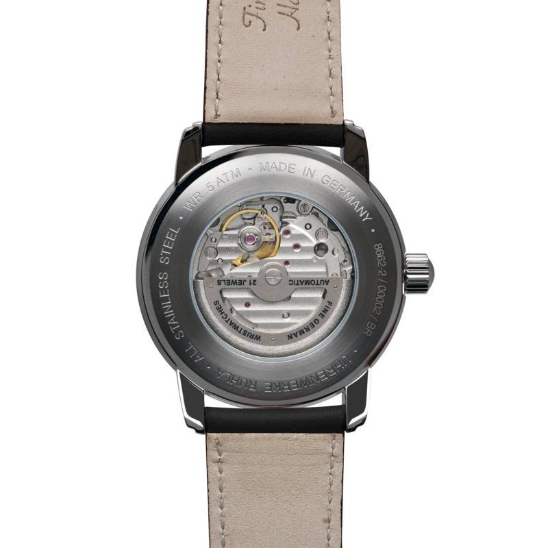 Ce garde-temps allemand est composé d'un mouvement automatique avec 21 rubis. D'origine japonaise et de calibre Miyota 82S7, il vous donnera toute la précision et la fiabilité possible souhaitée. Ce mouvement vous offrira donc un affichage analogique de qualité. Vous pourrez l'admirer en action grâce au fond de boîte transparent.