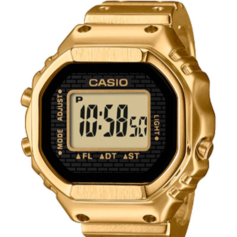 Le cadran de cette montre Casio est un chef-d'œuvre de design numérique moderne avec sa finition LCD et ses motifs briques subtilement intégrés. L'affichage numérique vous accueille avec les heures, minutes, secondes, assorti d'un calendrier automatique. Ce cadran LCD est optimisé pour la lisibilité grâce à la fonction Super Illuminator qui assure une visibilité parfaite dans toutes les conditions d'éclairage. L'éclat noir du cadran contraste magnifiquement avec le doré du boîtier, mettant en valeur l'esthétique contemporaine de cet accessoire. De plus, les trois boutons poussoirs sur le côté du boîtier permettent une interaction fluide et rapide avec les multiples fonctions de la montre.