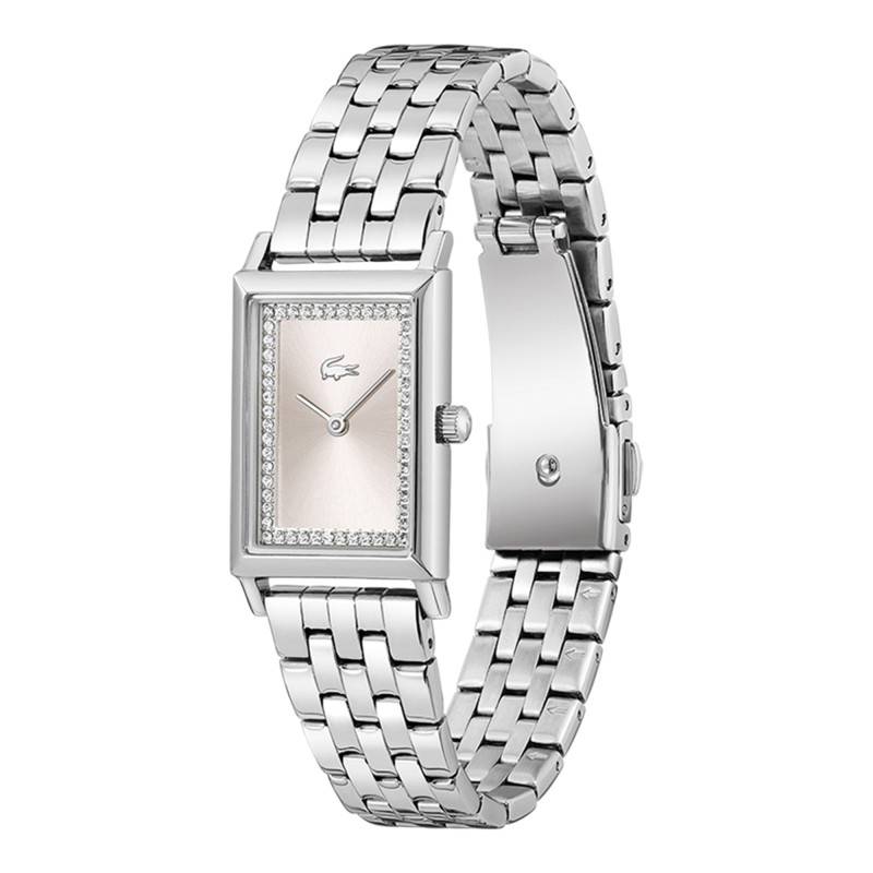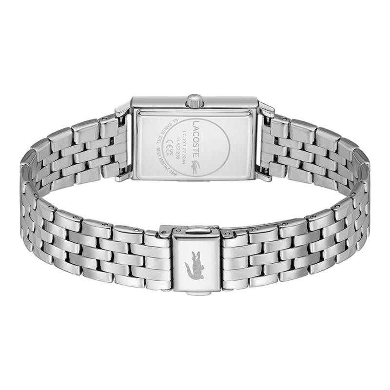 Découvrez la superbe montre Lacoste, un accessoire de mode féminin qui mêle élégance contemporaine et fonctionnalité. Ce modèle est spécialement conçu pour les femmes modernes qui recherchent une montre distinguée, à la fois pratique et stylée. Le boîtier rectangulaire, d'une épaisseur de 6 mm et de dimensions 21 mm, est fabriqué en acier inoxydable, garantissant une durabilité exceptionnelle. Avec un poids de 60 g, elle se porte aisément tout au long de la journée sans compromettre le confort. Ce garde-temps arbore un style chic grâce à sa lunette en acier qui encadre parfaitement son cadran. Le fond de la montre est emboîté, offrant une protection robuste sans excès de complexité. La couronne unique, positionnée sur le côté, permet un réglage facile de l'heure, respectant la praticité nécessaire dans notre quotidien dynamique.