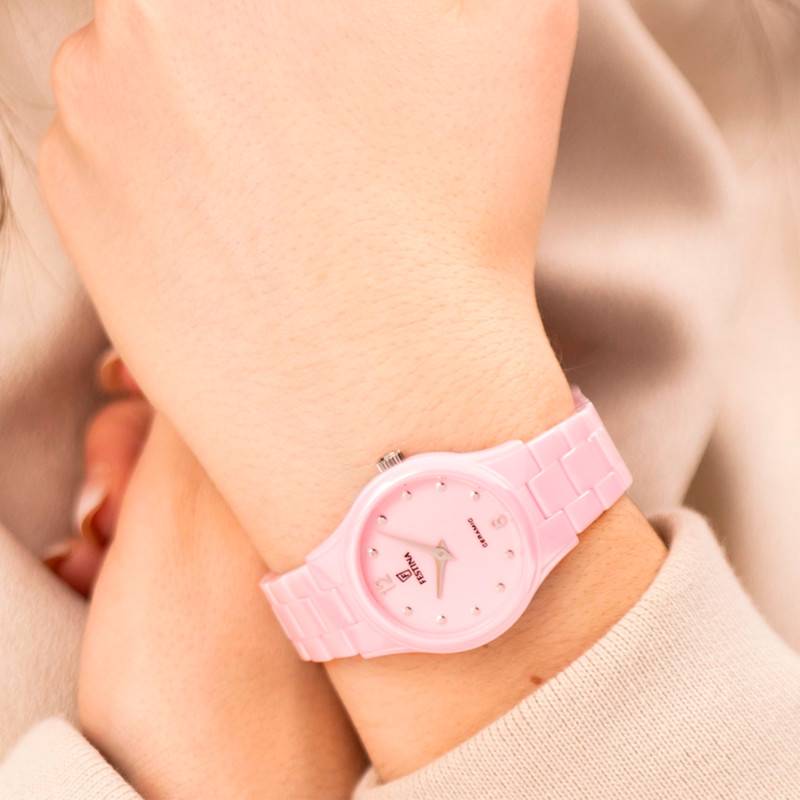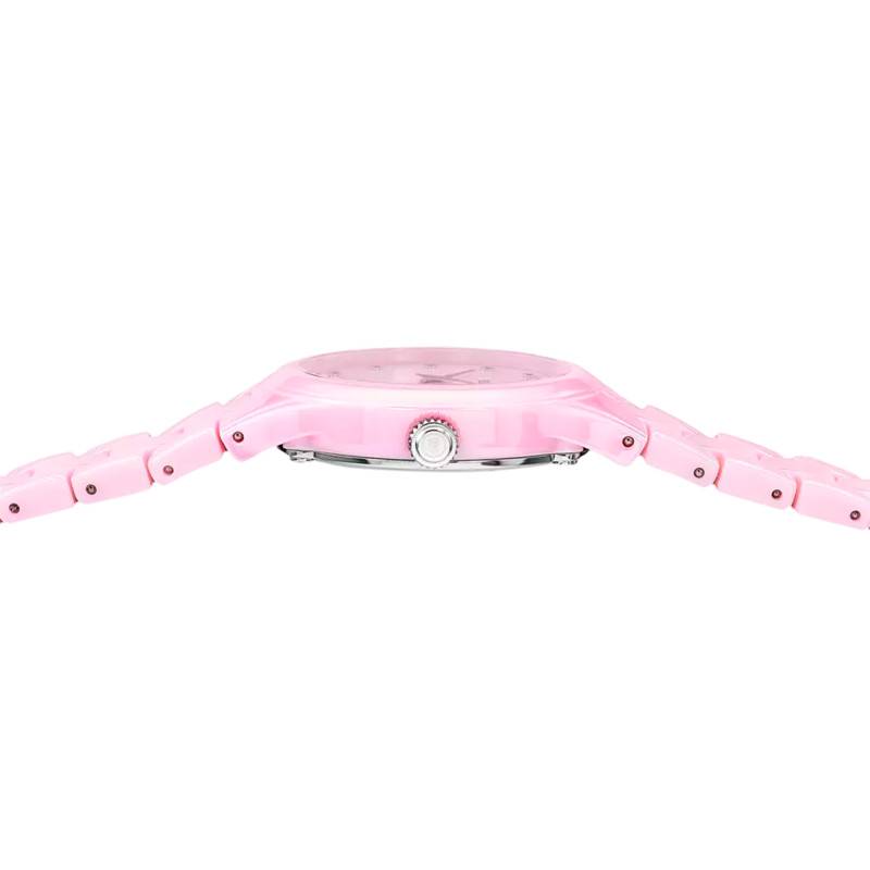 Le bracelet de cette montre est un véritable chef-d'œuvre d'élégance et d'ingéniosité. Confectionné en céramique rose, il privilégie non seulement l'apparence mais également le confort. La texture douce et agréable de la céramique est idéale pour un port prolongé, résistant à l'usure et préservant sa beauté au fil du temps. La combinaison de la boucle déployante intuitive rend chaque mise en place de la montre aussi simple que sécurisée, garantissant un ajustement parfait au poignet. Harmonisant à merveille avec le cadran, le bracelet de cette montre se destine aussi bien aux journées régulières qu'aux occasions spéciales où une touche de sophistication est requise.