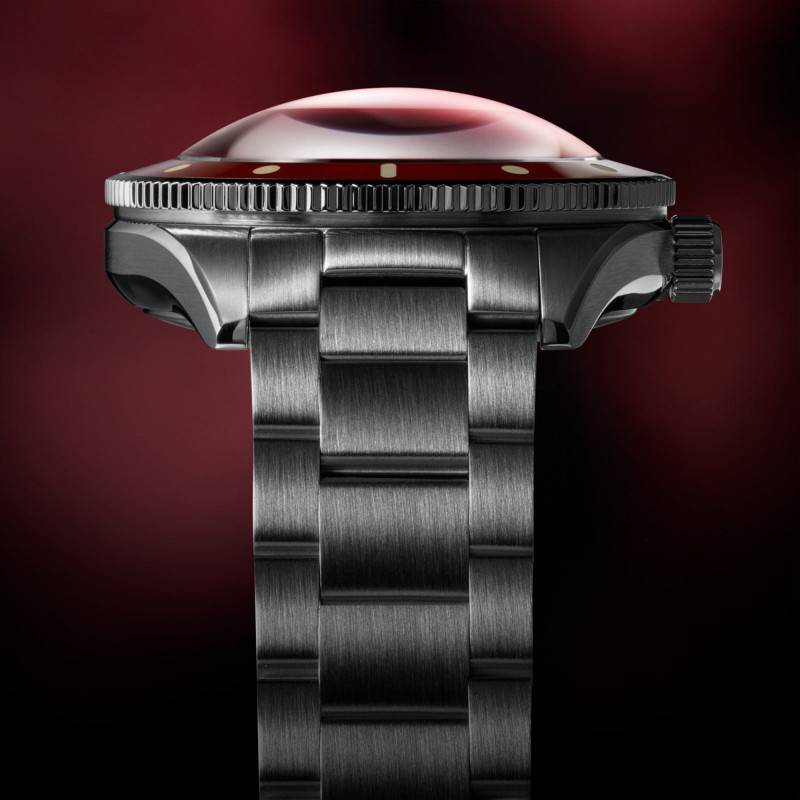 Le cadran captive instantanément par son design unique. Arborant un somptueux rouge avec un motif de vagues, il évoque à la fois aventure et sophistication. Les index luminescents permettent une lecture aisée même dans les conditions de faible luminosité, tandis que les aiguilles, également traitées pour briller dans l'obscurité, s'harmonisent parfaitement avec le reste du cadran. La présence d'un chemin de fer des minutes ajoute une dimension technique et précise à cet ensemble. Un guichet de date est discrètement intégré dans le cadran, soulignant ainsi la fonctionnalité moderne de la montre. La nomination de la marque Spinnaker trône fièrement sur le cadran, témoignant de l'héritage et de l'expertise en horlogerie. La qualité visuelle est intensifiée par le verre saphir, reconnu pour sa résistance aux rayures, qui assure que le cadran conserve toute sa splendeur au fil du temps. Cet équilibre entre innovation et tradition confère à la montre une allure raffinée et contemporaine, idéale pour l'homme moderne en quête d'une pièce pratique et esthétiquement plaisante.