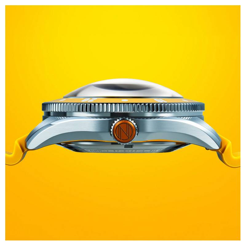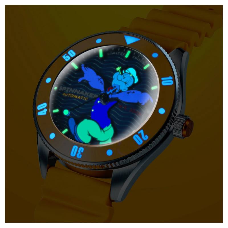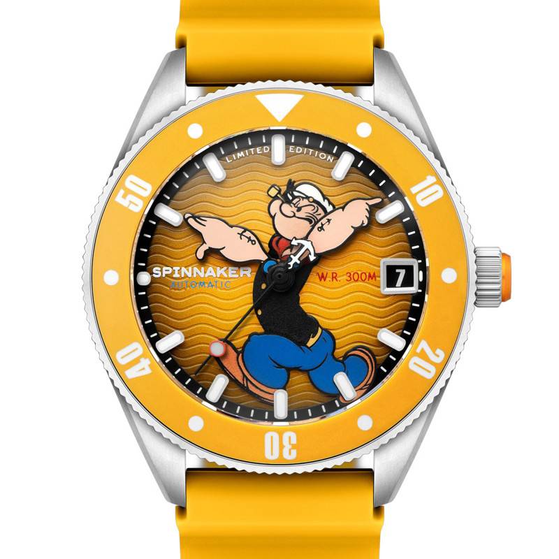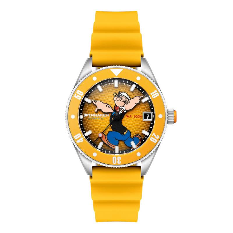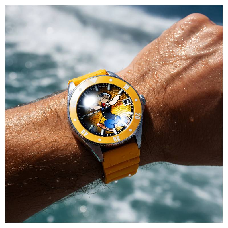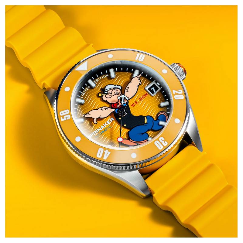 Cette remarquable montre Challenger Automatic Popeye Anchor Arms Limited Edition Corncob Yellow est une création distincte fruit de la collaboration entre Spinnaker et le célèbre personnage Popeye. Conçu pour les amateurs de montres distinctives, ce modèle se distingue par son boîtier rond en acier inoxydable, un matériau réputé pour sa robustesse et sa résistance à la corrosion, avec une finition polie et satinée qui lui confère un éclat subtil mais élégant. Le diamètre généreux de 42 mm assure une présence significative au poignet, tout en conservant un confort optimal grâce à une épaisseur de 19 mm. Cette montre est une édition limitée à 350 exemplaires.