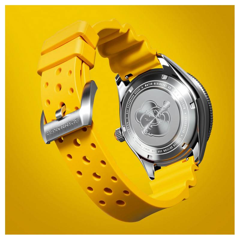 Le bracelet de cette montre est réalisé en silicone jaune, un choix audacieux qui reflète parfaitement l'énergie et la vitalité de Popeye. Non seulement est-il esthétique, mais ce matériau offre également des avantages fonctionnels considérables, tels que la résistance à l'eau et l'élasticité, garantissant confort et longévité. Le bracelet a une largeur d'entrecorne de 20 mm, une taille qui offre un équilibre parfait en termes de proportion et de style. Cette montre utilise une boucle ardillon, assurant une fermeture secure tout en offrant une facilité d'ajustement.