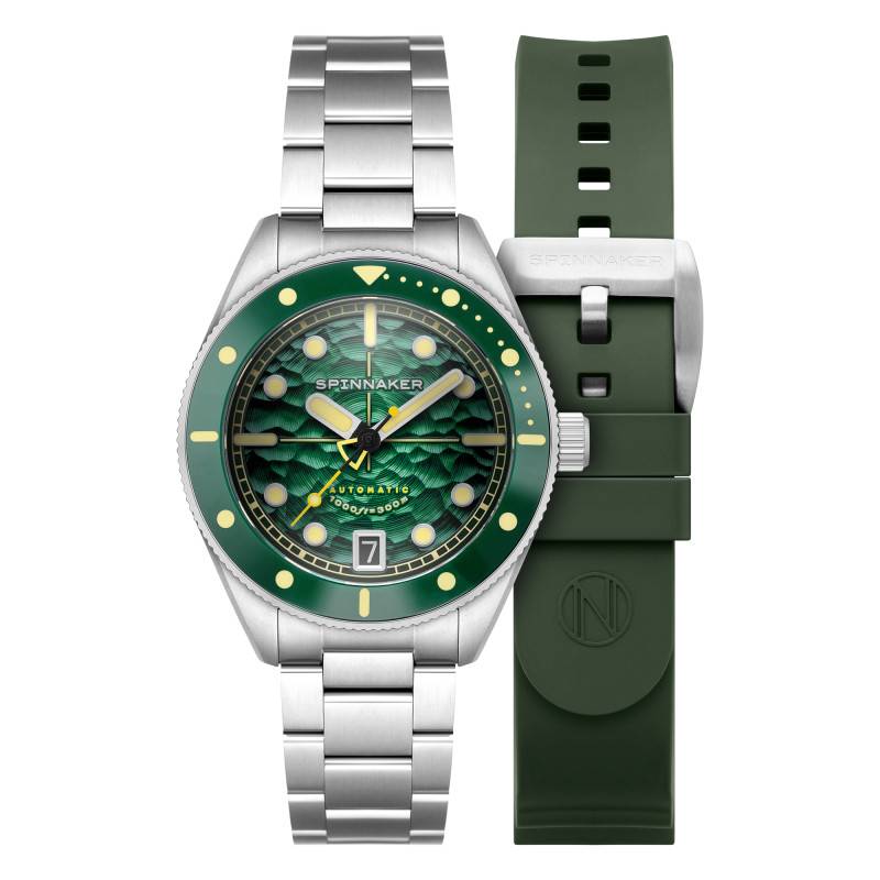 La montre est livrée avec deux bracelets interchangeables, offrant polyvalence et style. Le premier, en acier inoxydable brossé et poli, confère une allure robuste et moderne, tandis que le second, en caoutchouc vert, est parfait pour les aventures aquatiques. Les deux bracelets disposent de fermoirs distincts, une boucle ardillon et une boucle déployante, assurant une sécurité optimale et un confort au porté. L'entrecorne de 20,00 mm facilite le changement de bracelet, permettant une personnalisation facile et rapide selon l'occasion ou l'humeur.