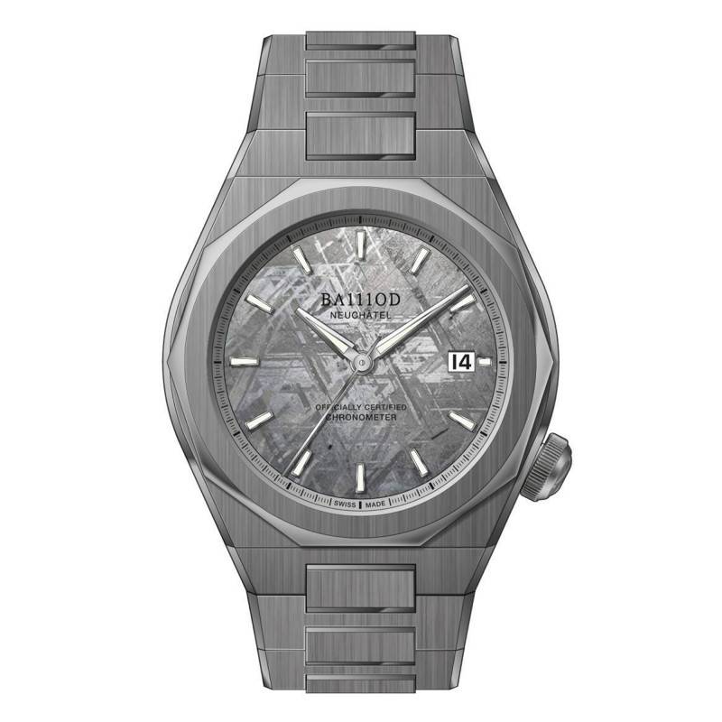 Cette montre Chapitre 7 Chronomètre Météorite se distingue par son boîtier de forme tonneau confectionné en acier inoxydable 316L, reconnu pour sa robustesse et résistance à la corrosion. La montre arbore une teinte gris raffinée qui se conjugue avec des finitions mattes (brossées/satinées) et polies, lui conférant un aspect à la fois moderne et intemporel. Avec un diamètre de 40 mm et une épaisseur de 10,50 mm, cette pièce offre un équilibre parfait entre élégance et fonctionnalité, convenant aussi bien pour un usage quotidien que pour des occasions spéciales.