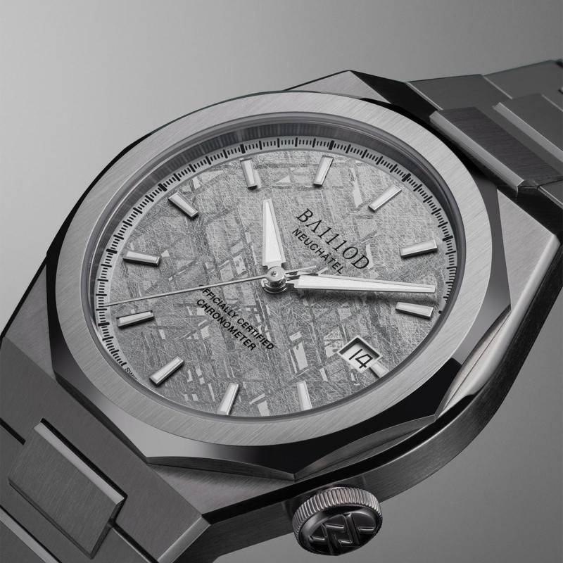 Le cadran de cette montre constitue une véritable œuvre d'art, conçu à partir de météorite, ce qui lui confère une texture et un motif cosmiques uniques. Les index et le chemin de fer des minutes assurent une lisibilité sans faille, tandis que les aiguilles indiquent précisément les heures, minutes et secondes. Mis en valeur par un verre saphir traité antireflet, le cadran est protégé des rayures tout en réduisant les reflets gênants, facilitant ainsi la lecture sous tous les angles. Un guichet ingénieusement placé affiche la date, apportant une touche pratique supplémentaire à cet affichage analogique qui marie tradition et innovation.