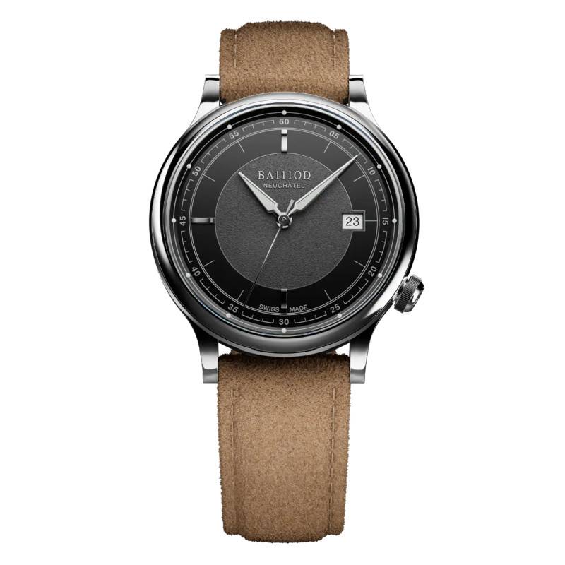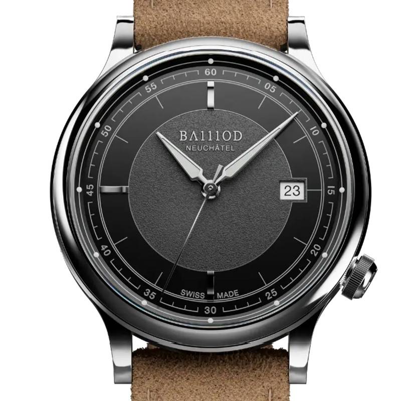 Le cadran de la montre Chapitre 8 Black est un exemple de sophistication et de fonctionnalité suisse. Ce cadran noir mat possède une finition texturée qui accentue son allure moderne et raffinée. Les chiffres arabes et les index sont luminescents, permettant une lecture sans effort de l'heure dans l'obscurité. Un chemin de fer des minutes orne la circonférence, ajoutant à la précision et à la clarté de l'affichage. À 3 heures, un discret guichet offre la lecture de la date, complétant ainsi les fonctions essentielles d'un garde-temps classique.