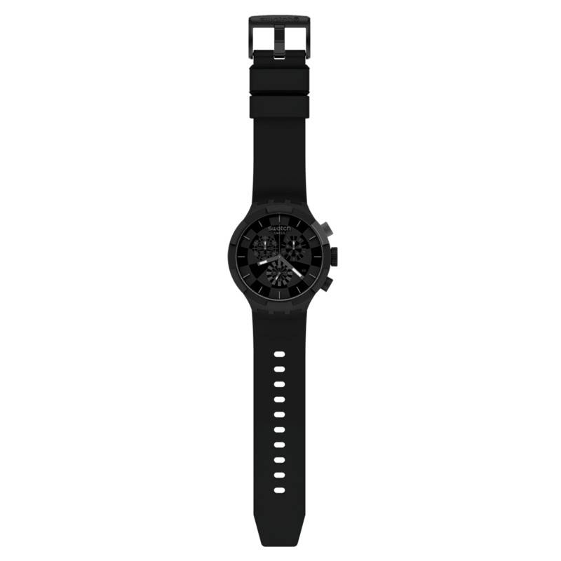 La maison Swatch vous propose de découvrir un modèle tendance chronographe, aux allures masculines et sportives. Cette montre Checkpoint Black SB02B400 appartient à la ligne Big Bold. Elle se compose d'un boîtier en plastique de forme ronde et d'une intense couleur noire. Son diamètre de 47 mm et son épaisseur de 13 mm épouseront parfaitement les courbes d'un poignet masculin. Vous retrouverez à deux heures et 4 heures deux boutons-poussoirs accompagnés d'une couronne remontoir. Ces éléments vous permettront de modifier à votre convenance les différents marqueurs temporels présents sur le cadran. Ce dernier est quant à lui surmonté par un verre plexiglas. Vous retrouverez un fond de boîte monobloc qui permettra à votre garde-temps d'être étanche jusqu'à 30 mètres de profondeur.