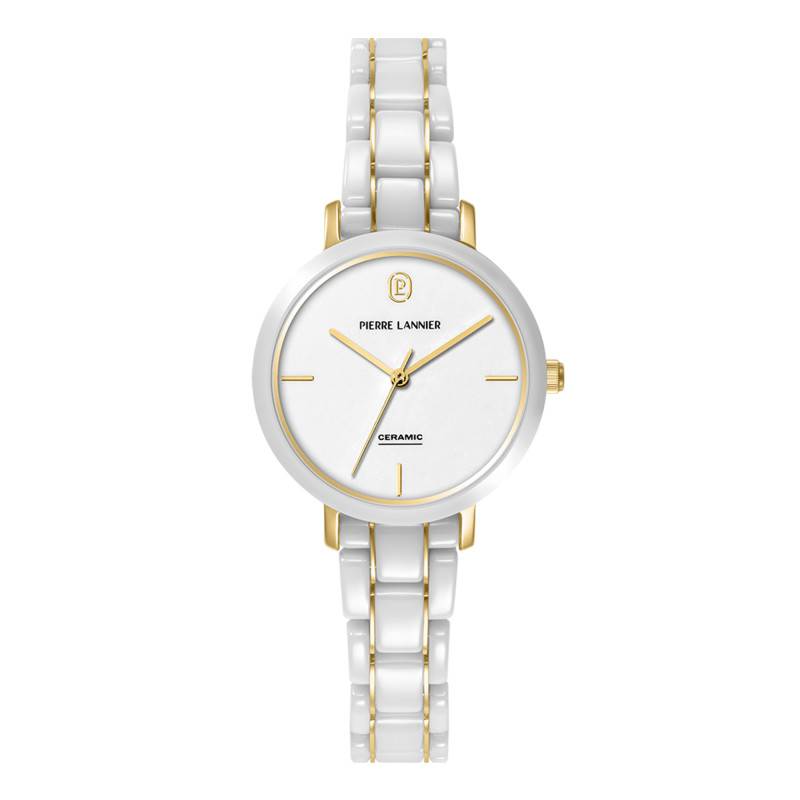Le bracelet de cette montre Pierre Lannier est un véritable hommage à l'élégance moderne, fabriqué en acier et céramique aux finitions soignées. Disponible dans un coloris blanc éclatant, il s'adapte à toutes les tenues grâce à son design épuré et sa finition poli. Avec une largeur de 12 mm, il confère à la montre une silhouette élancée et raffinée. La fermeture se fait à l'aide d'une boucle déployante papillon, ajoutant une touche de sophistication tout en assurant un maintien parfaitement sécurisé au poignet.
