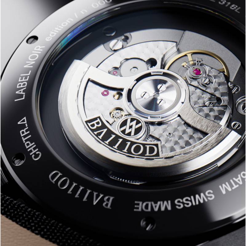 Cette montre BA111OD est une véritable déclaration de style et de sophistication. La collaboration avec Label Noir pour créer la CHPTR_Δ.5 en édition limitée à 111 pièces numérotées en fait une pièce de collection incontournable. Fabriquée en Suisse, elle intègre un design moderne avec un boîtier de 44,00 mm en acier inoxydable 316L, favorisant une durabilité exceptionnelle et une allure raffinée. L'acier poli confère une élégance intemporelle tout en restant résolument moderne. Le boîtier rond abrite un verre de qualité saphir bombé, qui est traité antireflets, ce qui permet une lisibilité parfaite quelles que soient les conditions de lumière. Le fond transparent est une caractéristique premium qui vous permet de profiter du spectacle du mouvement automatique qui anime cette montre.