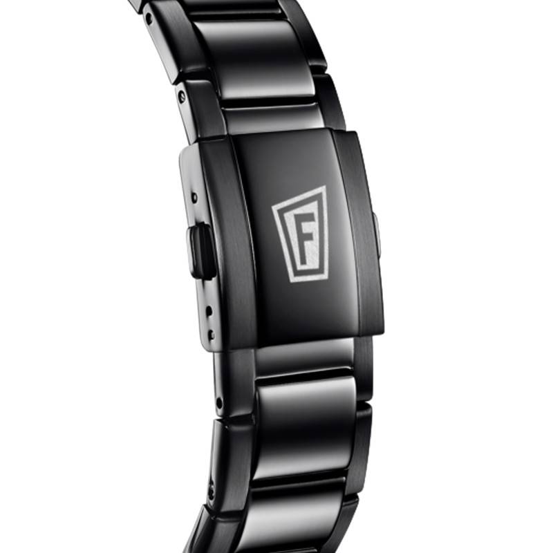 La montre est proposée avec un bracelet en acier inoxydable noir. C'est un bracelet à la fois solide et confortable. Il mesure 22 mm de large et se referme grâce à une boucle déployante.
