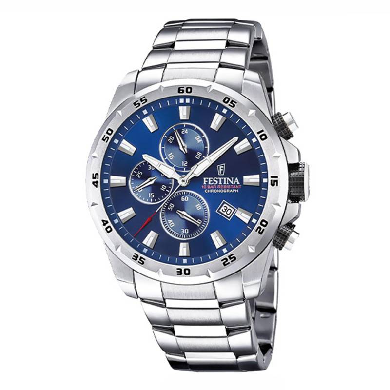 Festina, maison horlogère connue depuis de nombreuses années vous propose de découvrir sa nouvelle montre chronographe F20463/2 de la collection Sport. Ce modèle tendance au caractère prononcé est doté d'un boîtier rond en acier inoxydable. De 45,05 millimètres de diamètres et 12 millimètres d'épaisseur, il arbore des dimensions particulièrement masculines. Il accueille une lunette graduée afin de vous apporter plus de précision. De plus, vous trouverez à 3 heures une couronne vissée. Elle est entourée par deux boutons poussoirs à 2h et 4h. Ils vous permettront de régler les différentes aiguilles, compteurs et guichet date du cadran. Quant à lui, il est surmonté d'un verre minéral. Robuste et résistant, il le protègera contre les chocs et les rayures du quotidien. Enfin, grâce à son fond de boîte vissé, cette montre est étanche jusqu'à 10 ATM, soit 100 mètres de profondeur.
